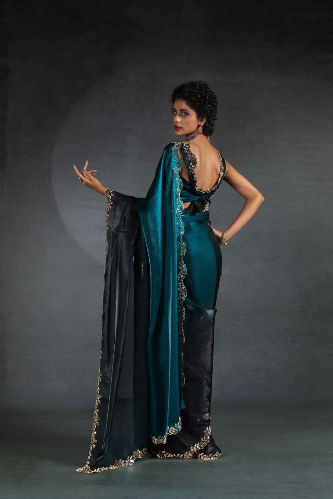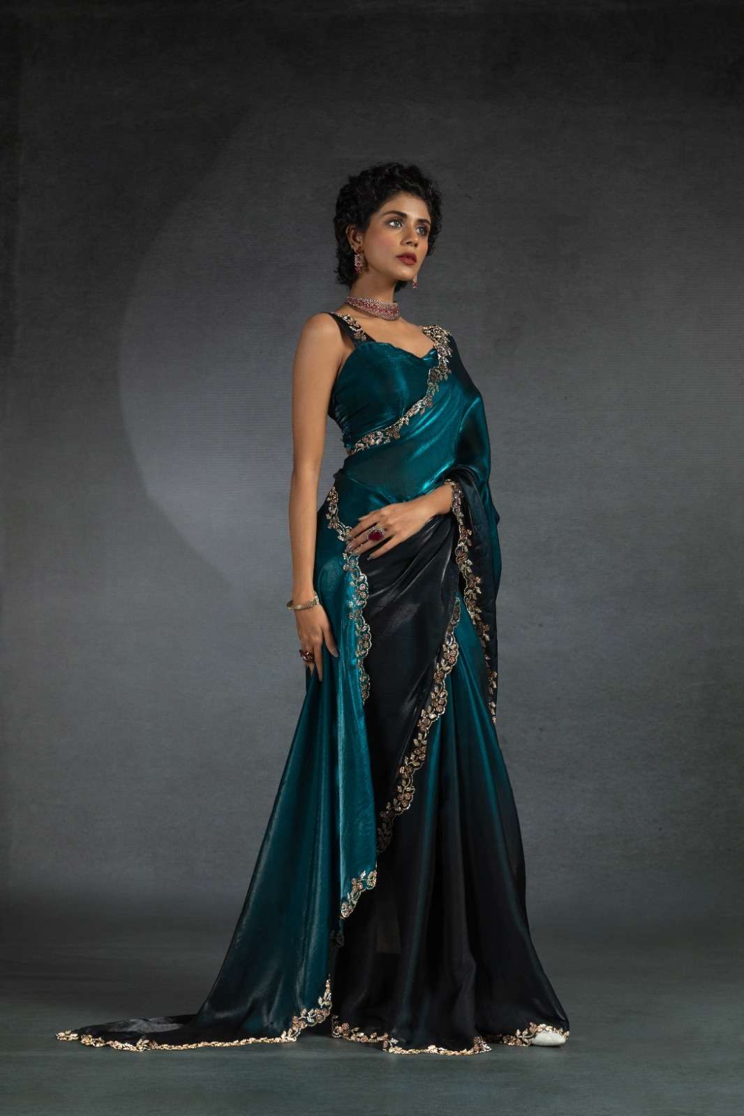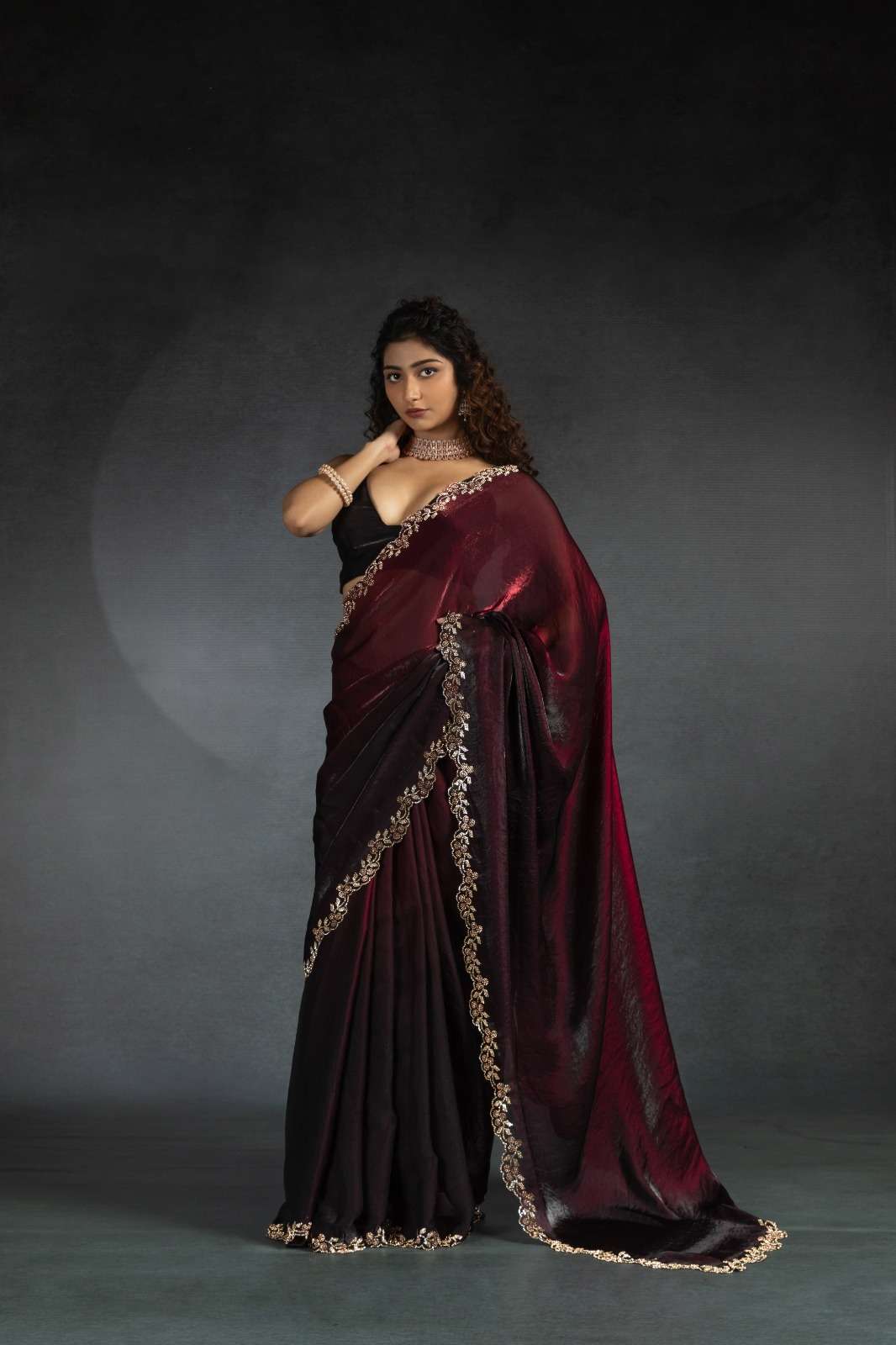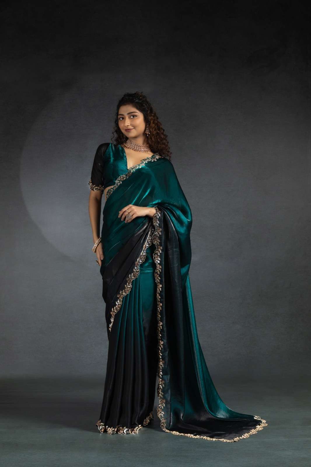Tow tone satin silk shaded(fandy)hand work jerquen hand work jerquen satin silk two tone BLOUSE