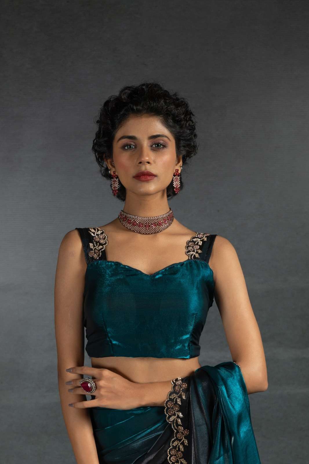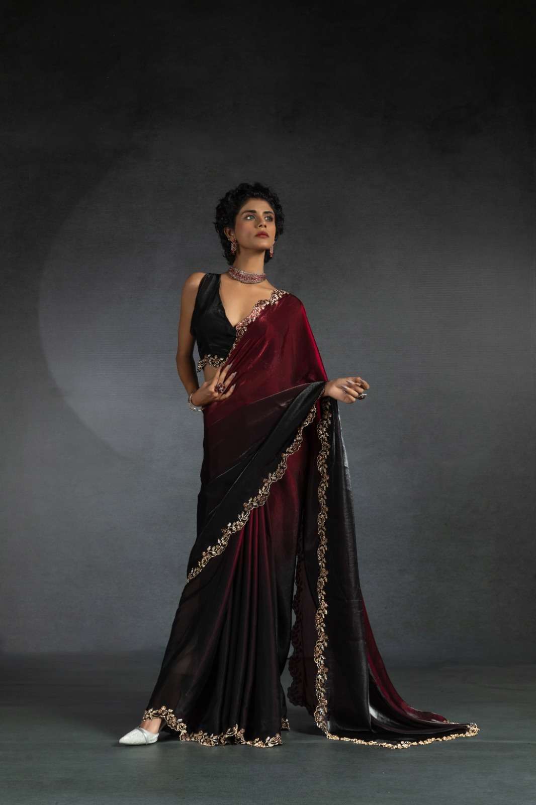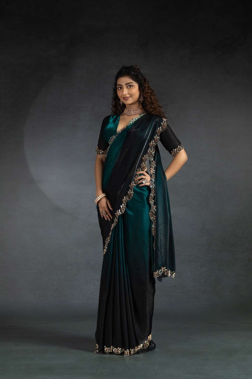 Tow tone satin silk shaded(fandy)hand work jerquen hand work jerquen satin silk two tone BLOUSE