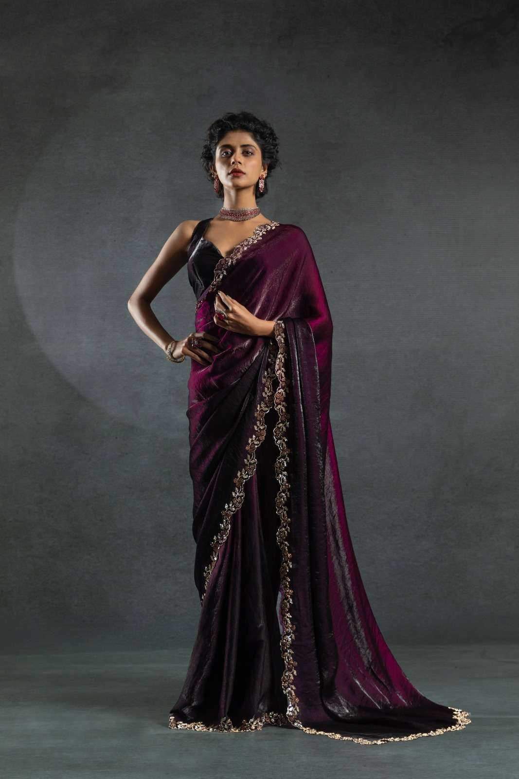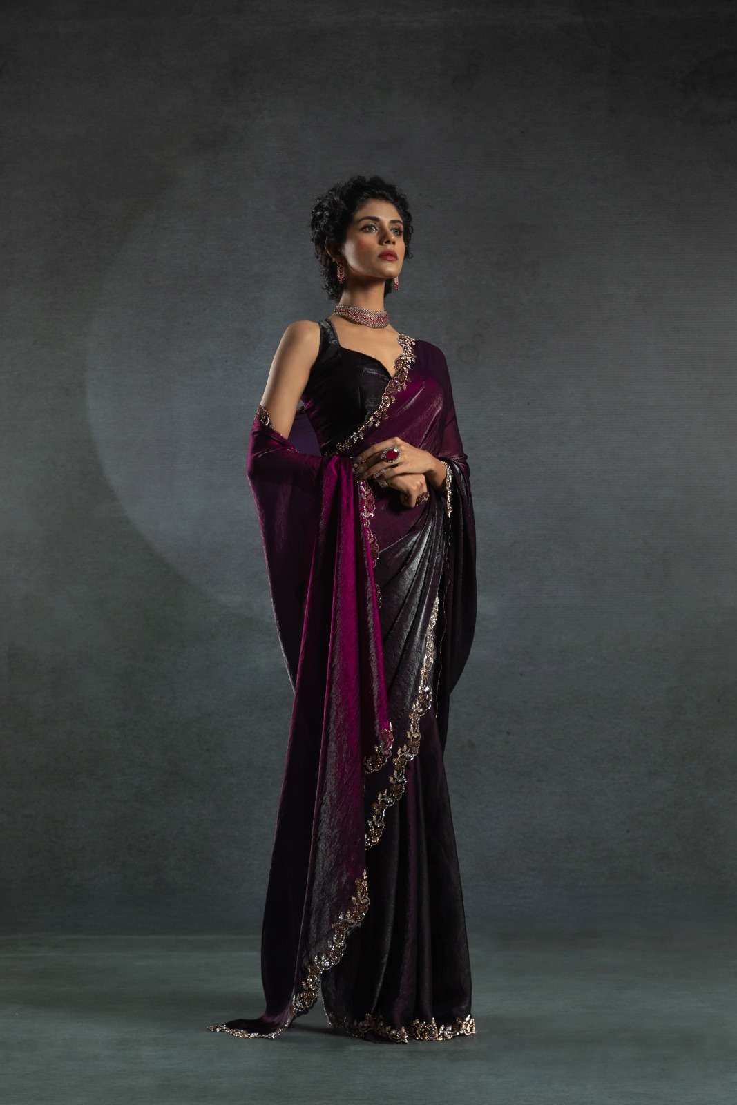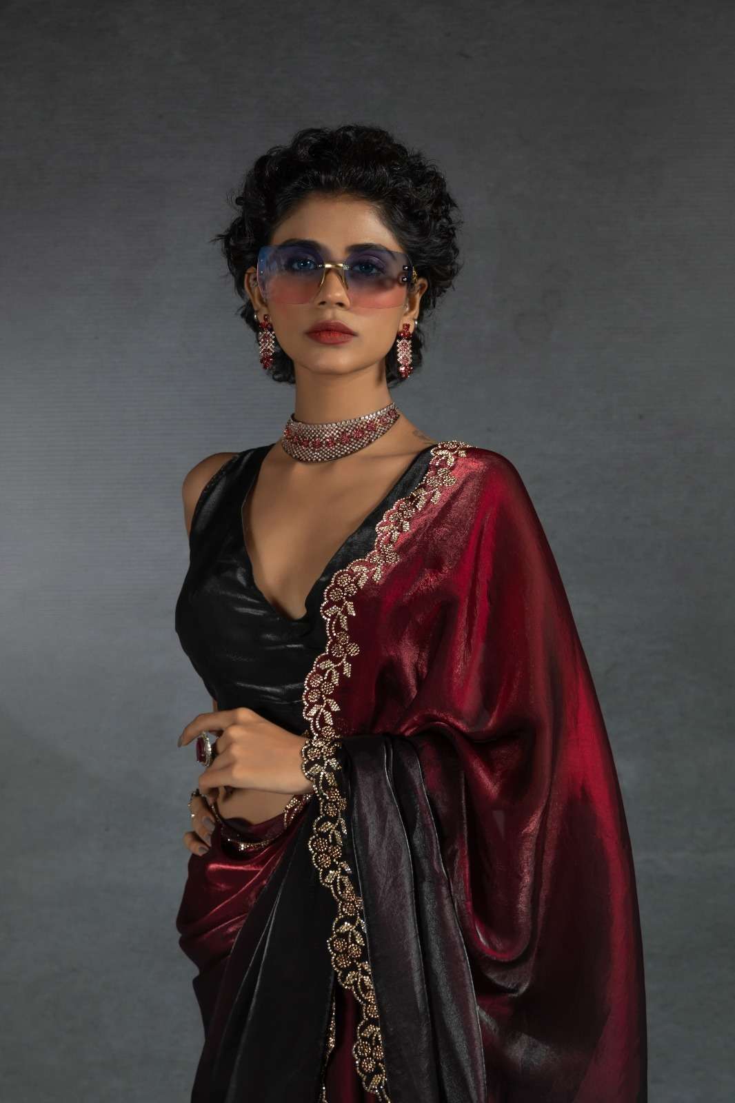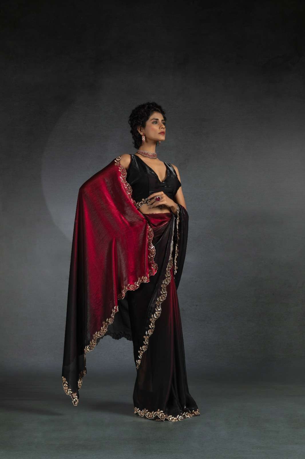 Tow tone satin silk shaded(fandy)hand work jerquen hand work jerquen satin silk two tone BLOUSE