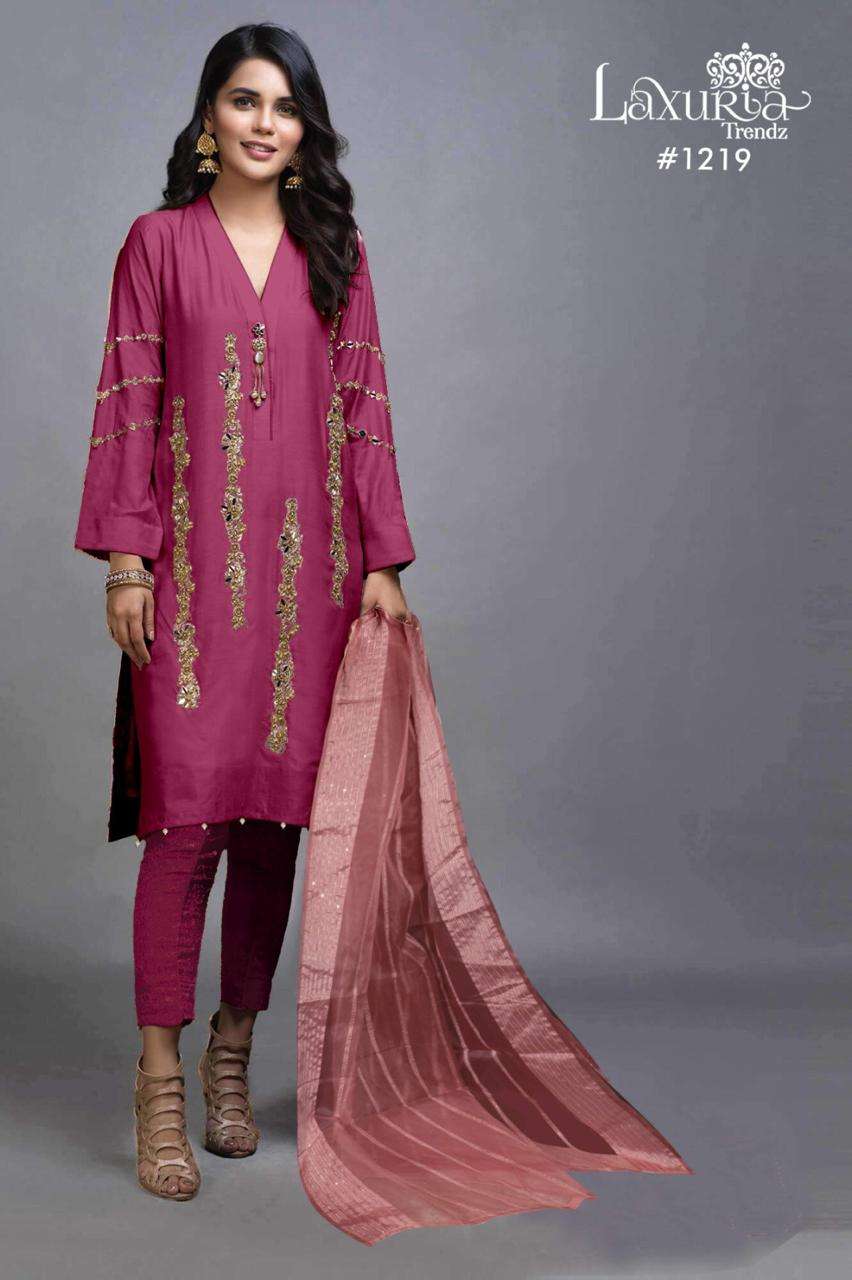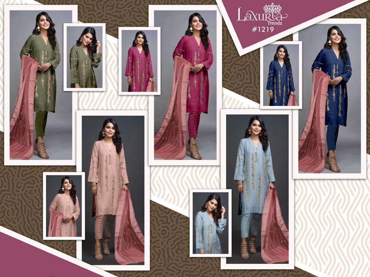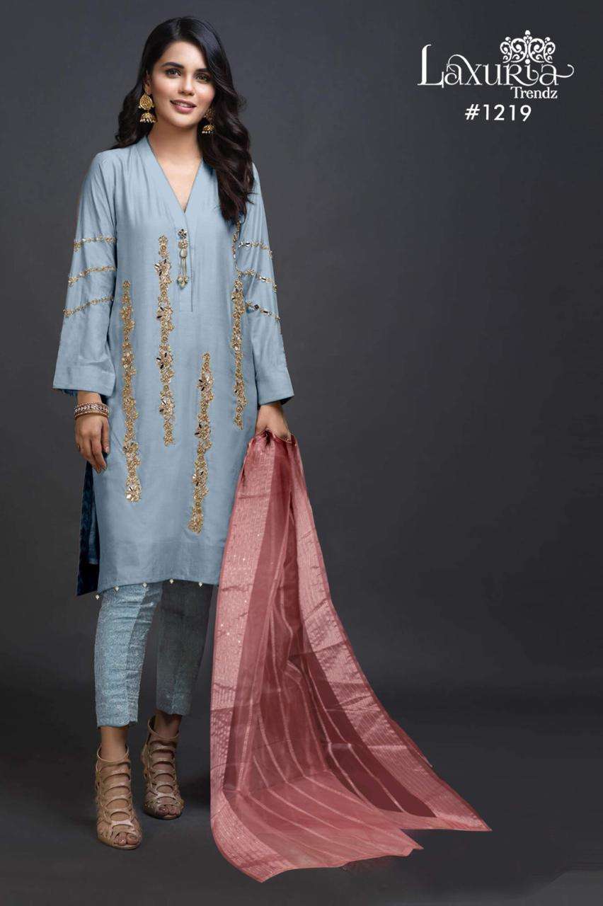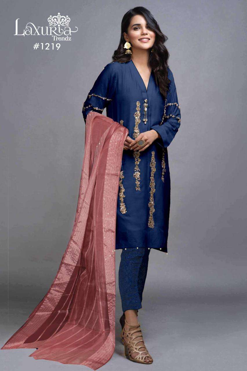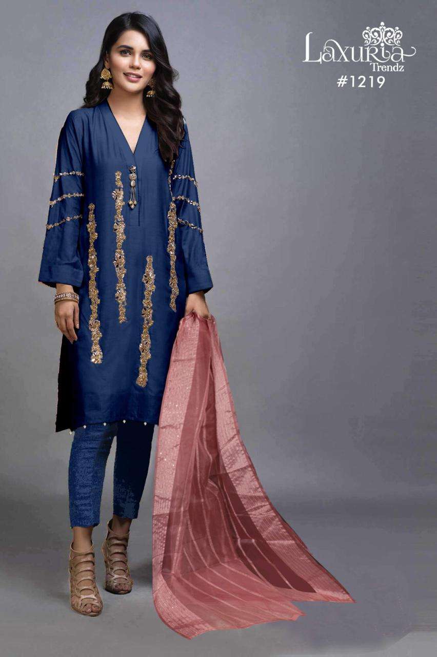 Buy Online D No 1219A by laxuria Trendz kurti collection manufacturers surat 5 Pcs of Full Catalogue at Wholesale Price. Looking for D No 1219A by laxuria Trendz kurti collection manufacturers surat Full Catalouge at Best Price? Buy Now D No 1219A by laxuria Trendz kurti collection manufacturers surat at Wholesale Rate of Rs 7500 with Total 5 Pcs from authroized dealer and supplier of Laxuria Trandz Brand. Cost of Each piece is just only Rs 1500 which is very low and affordable price to resale the product in your retail store ,This is Surat based Wholesale Supplier & Dealer of Laxuria Trandz Brand. Click on Brand name to Know more about Laxuria Trandz Brand's products.Call or Whatsapp on 9898838984 for booking or enquiry