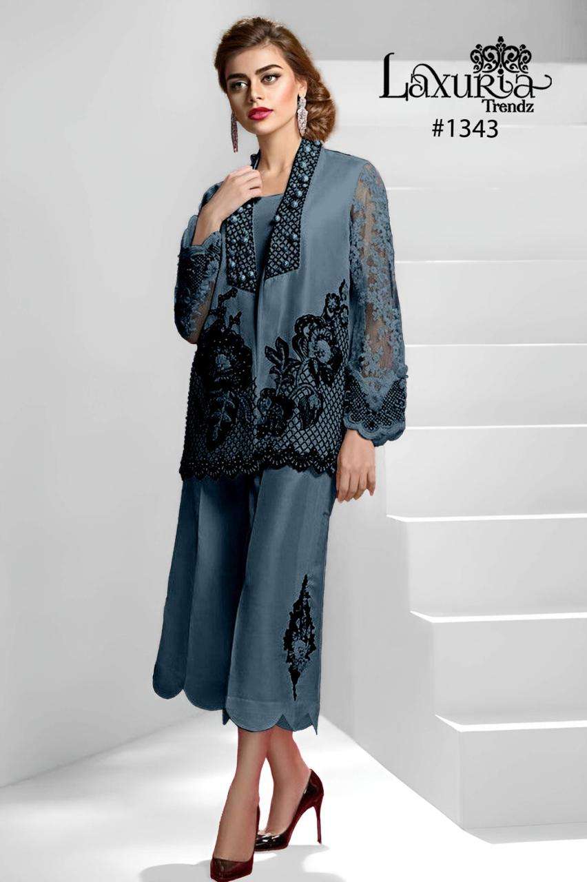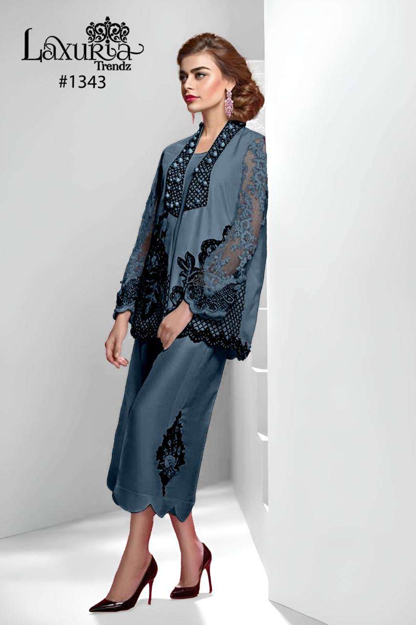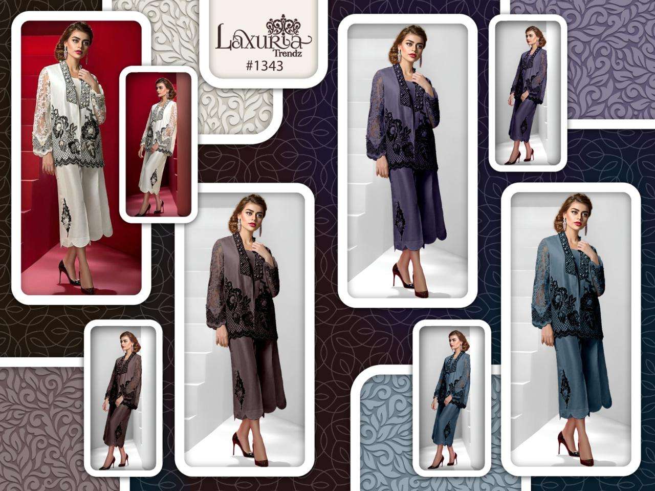 Buy Online D No 1343 by laxuria trendz Cord set collection manufacturer surat 4 Pcs of Full Catalogue at Wholesale Price. Looking for D No 1343 by laxuria trendz Cord set collection manufacturer surat Full Catalouge at Best Price? Buy Now D No 1343 by laxuria trendz Cord set collection manufacturer surat at Wholesale Rate of Rs 4800 with Total 4 Pcs from authroized dealer and supplier of Laxuria Trandz Brand. Cost of Each piece is just only Rs 1200 which is very low and affordable price to resale the product in your retail store ,This is Surat based Wholesale Supplier & Dealer of Laxuria Trandz Brand. Click on Brand name to Know more about Laxuria Trandz Brand's products.Call or Whatsapp on 9898838984 for booking or enquiry