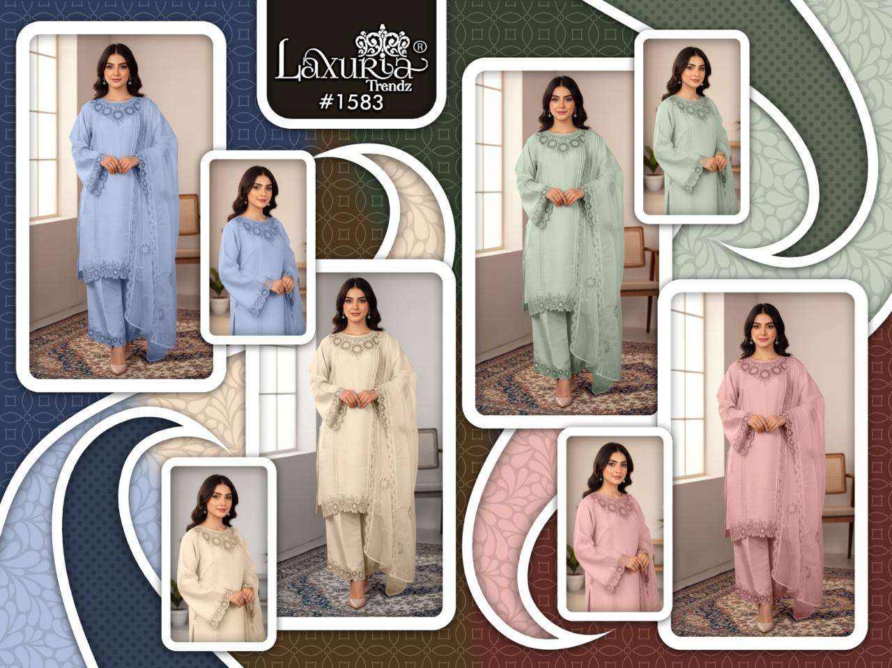 Buy Online D No 1583 by laxuria Trendz kurti collection manufacturers surat 4 Pcs of Full Catalogue at Wholesale Price. Looking for D No 1583 by laxuria Trendz kurti collection manufacturers surat Full Catalouge at Best Price? Buy Now D No 1583 by laxuria Trendz kurti collection manufacturers surat at Wholesale Rate of Rs 6800 with Total 4 Pcs from authroized dealer and supplier of Laxuria Trandz Brand. Cost of Each piece is just only Rs 1700 which is very low and affordable price to resale the product in your retail store ,This is Surat based Wholesale Supplier & Dealer of Laxuria Trandz Brand. Click on Brand name to Know more about Laxuria Trandz Brand's products.Call or Whatsapp on 9898838984 for booking or enquiry