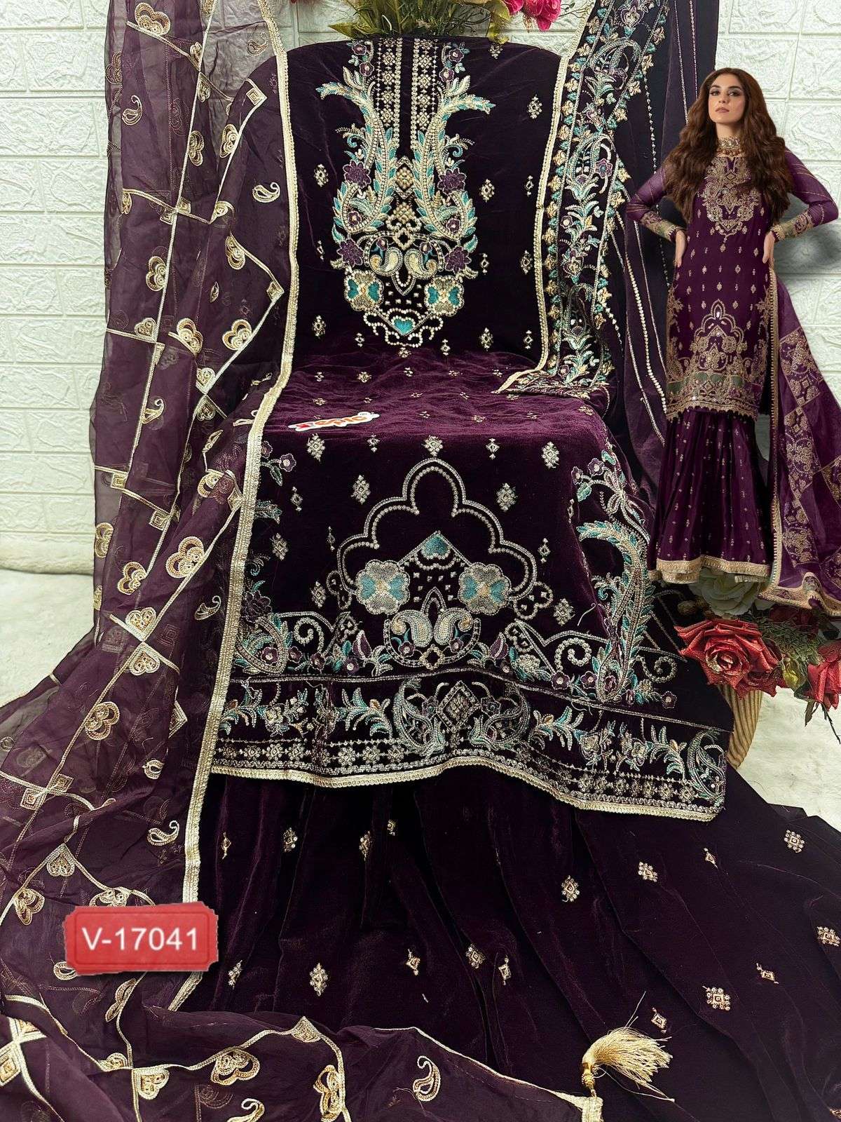 *Top:-* VELVET EMBROIDERED *Dupatta:-* ORGANZA EMBROIDERED *Bottom:-* VELVET EMBROIDERED