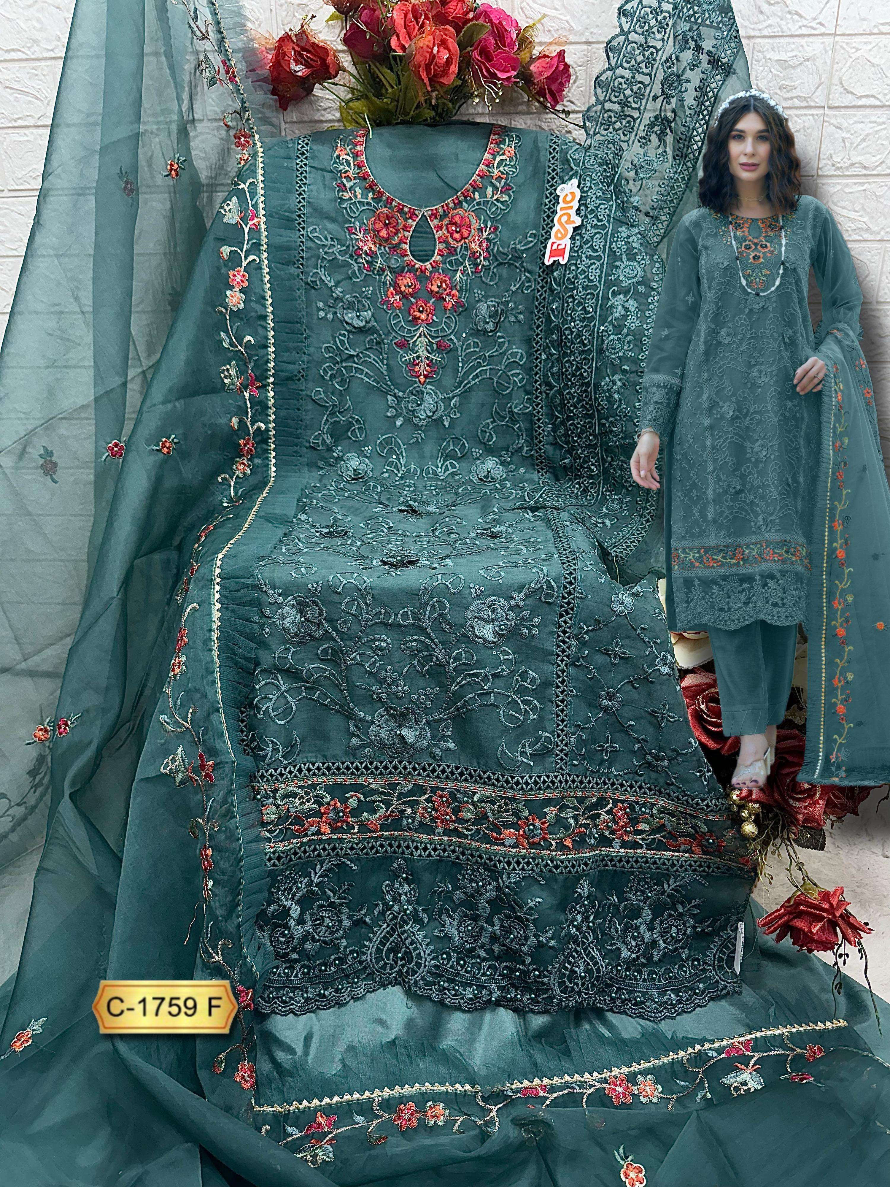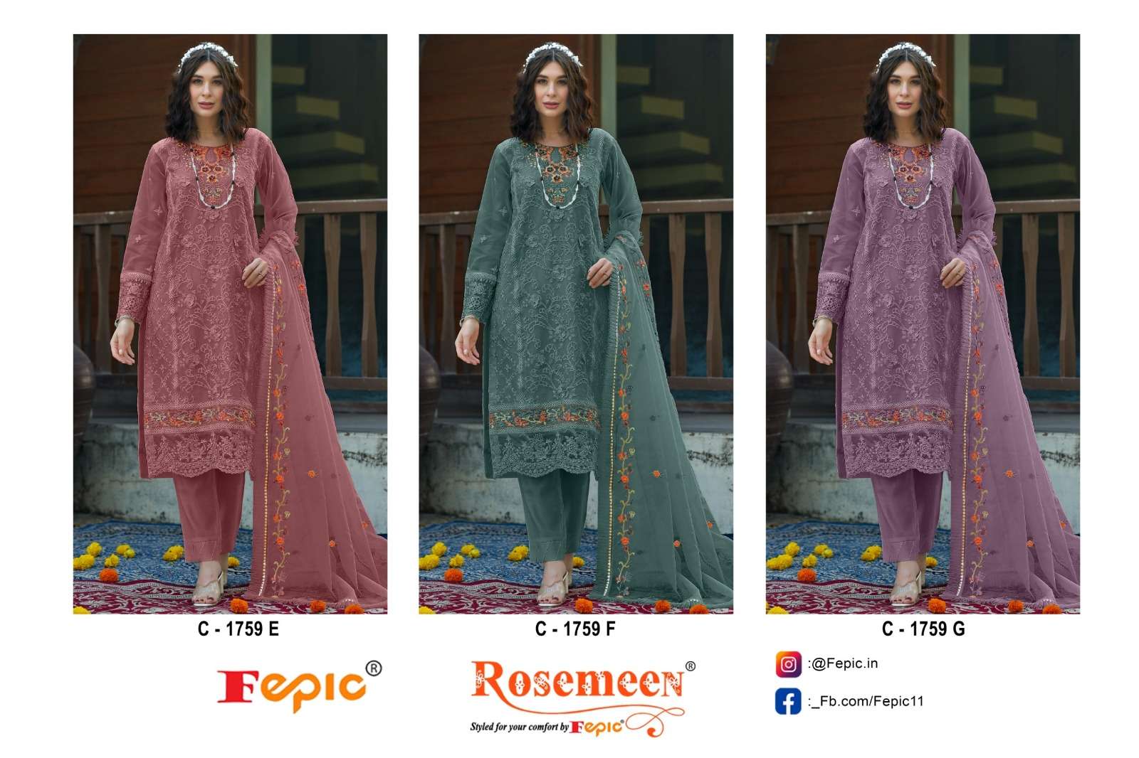 D NO 1759 ROSEMEEN by FEPIC ORGANZA suit collection manufacturer Surat