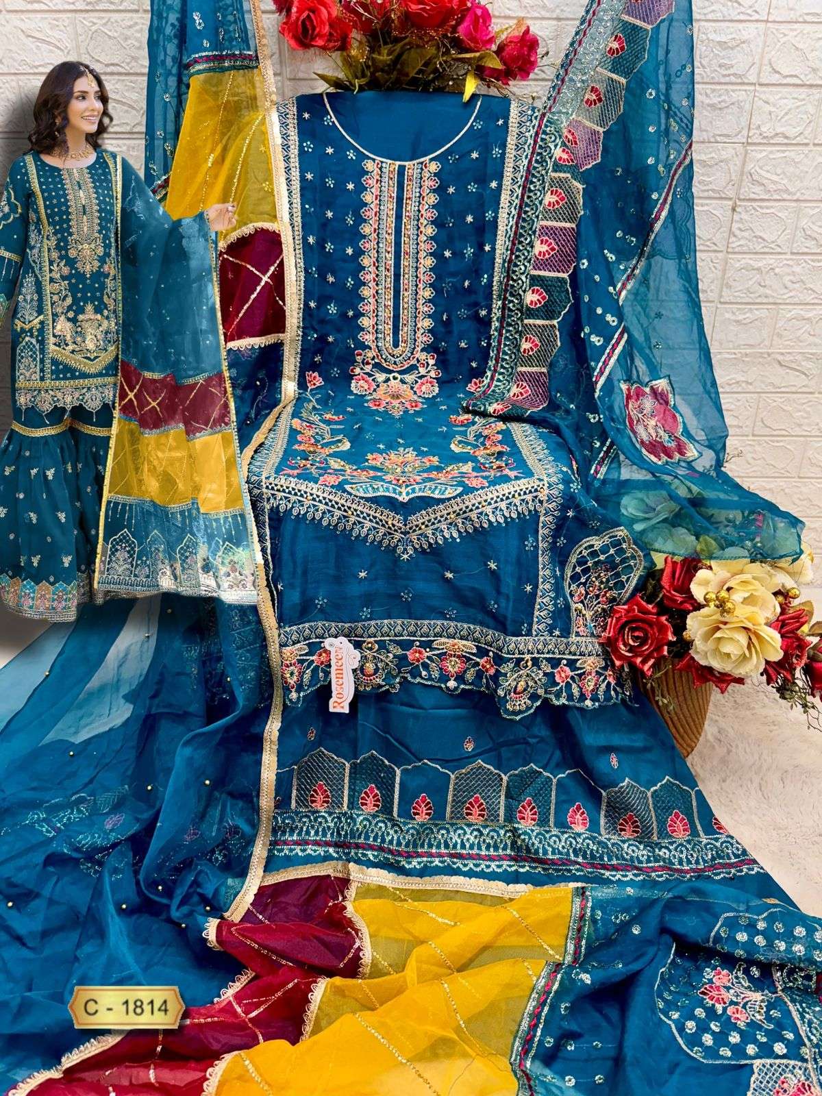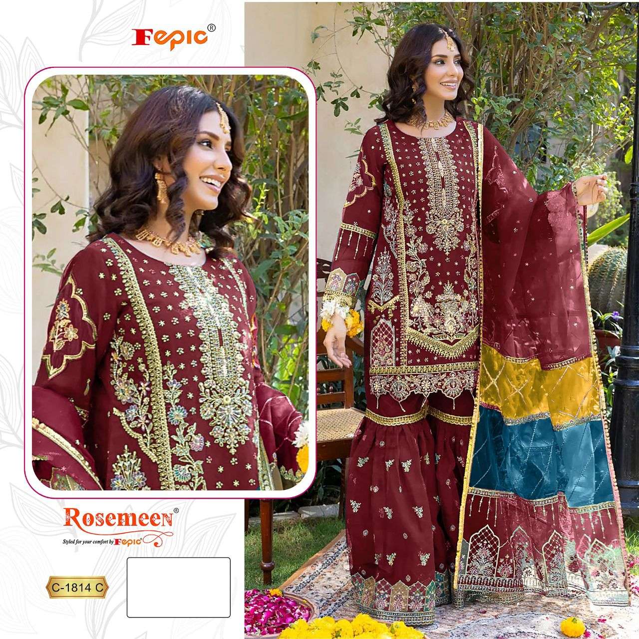 D NO 1814 ROSEMEEN By FEPIC ORGANZA suit collection manufacturer Surat