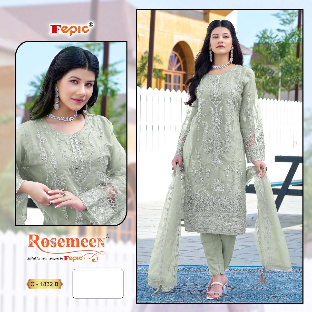 D NO 1832 ROSEMEEN by FEPIC ORGANZA suit collection manufacturer Surat
