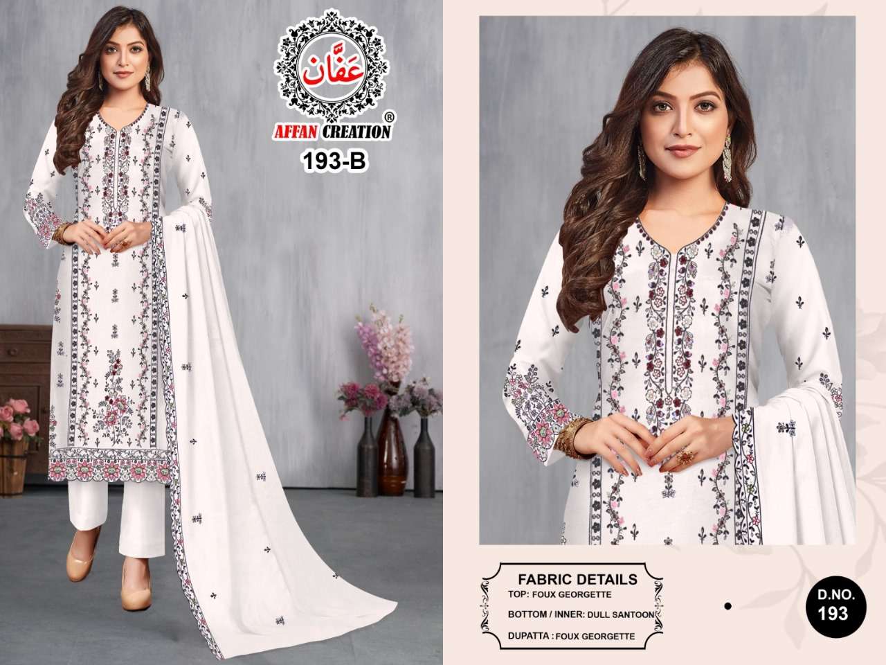 D NO 193 by AFFAN CREATION suit collection manufacturers surat