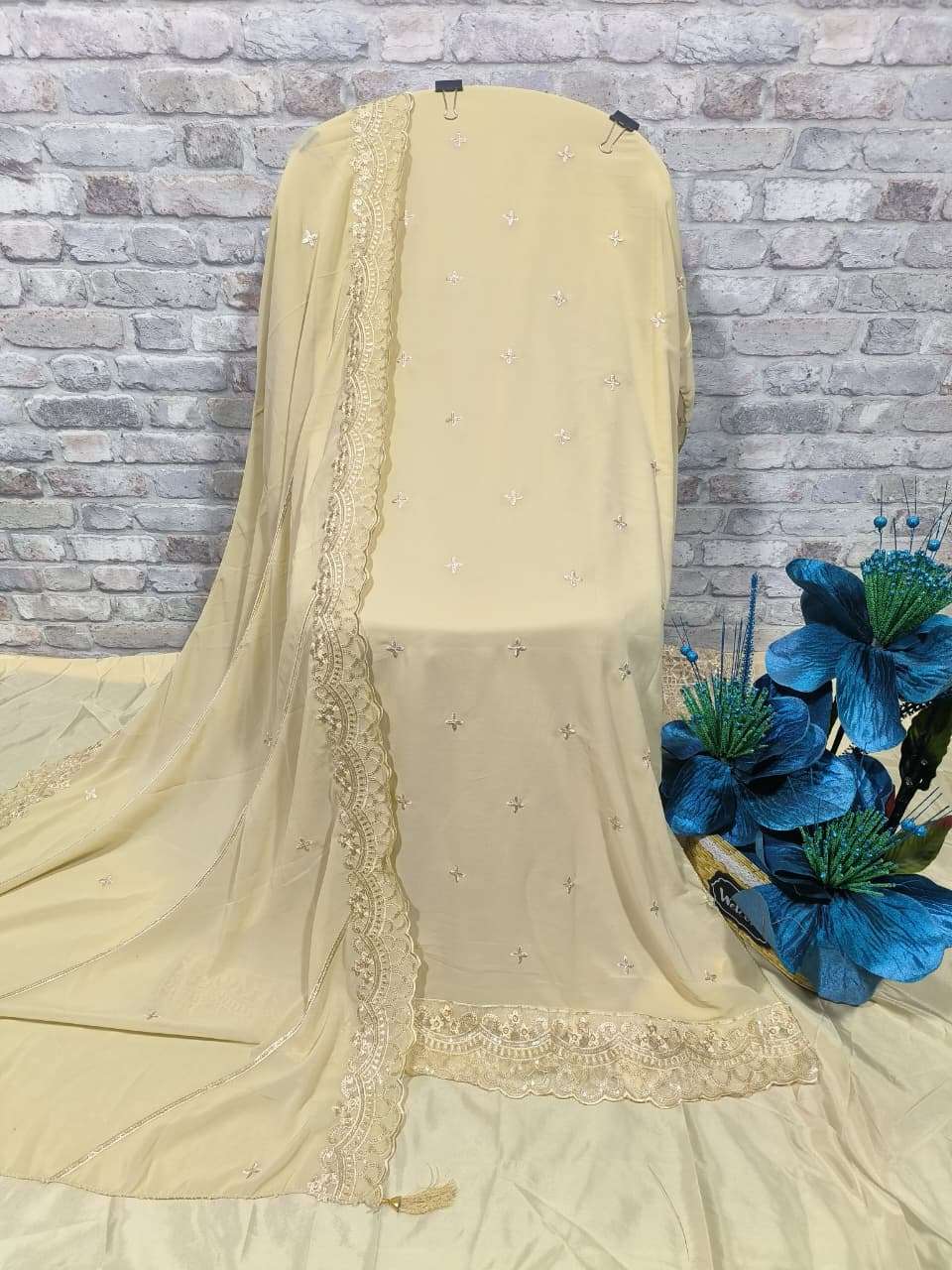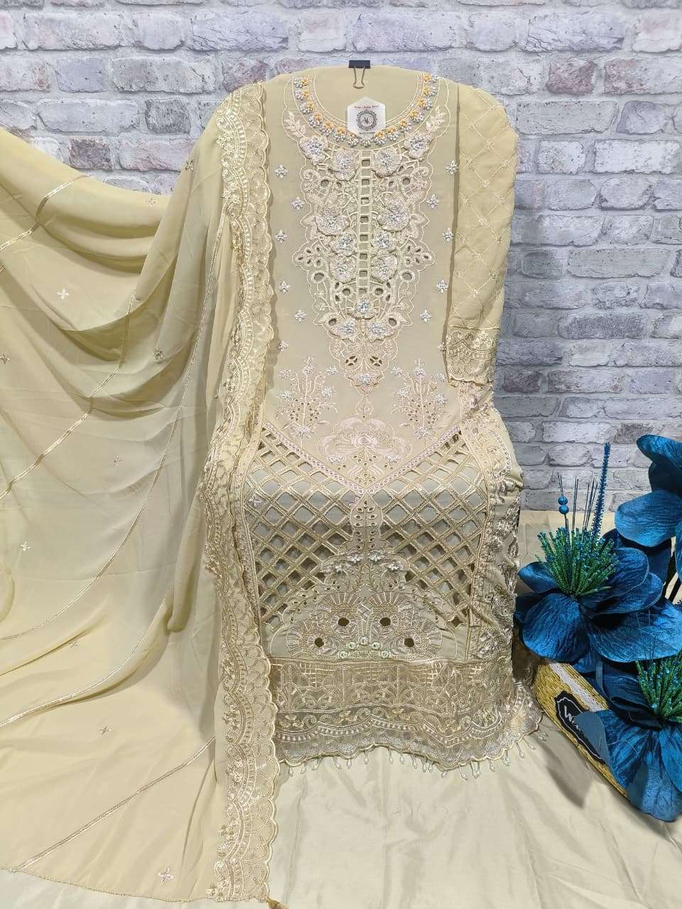 ━━━━━━━━━━━━━━━━━━ 🔴 PRODUCT DETAILS 🔴 ━━━━━━━━━━━━━━━━━━ 👗 Top :- *Foux Georgette with heavy embroidery, handwork & cutwork* 🧵 Inner :- *Pure French Crape* 👖 Pant :- *Pure French Crape* 🧣 Dupatta :- *Foux Georgette with heavy embroidery work*