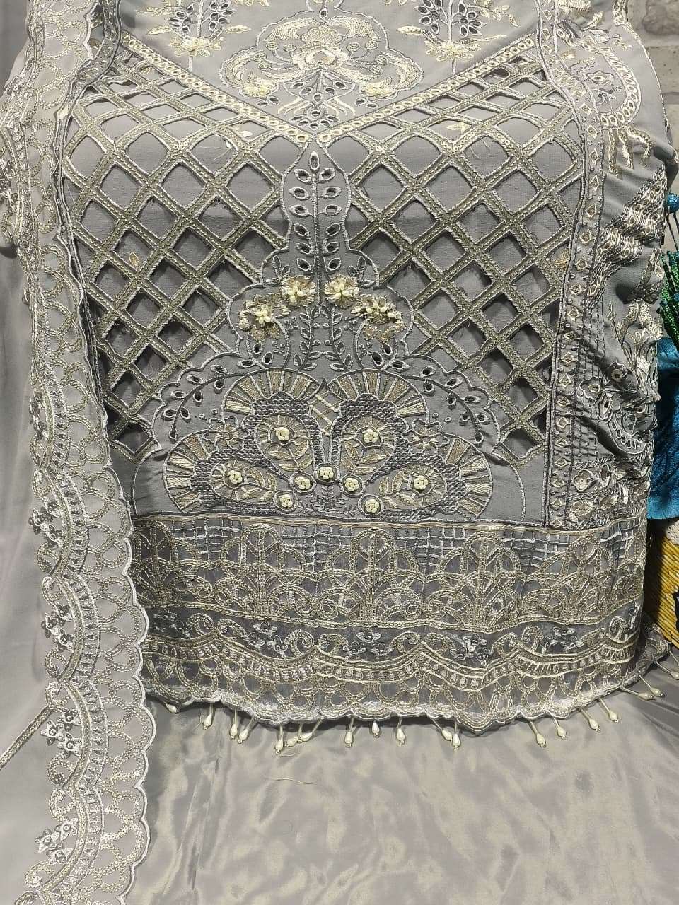 ━━━━━━━━━━━━━━━━━━ 💕💕 DESCRIPTION 💕💕 ━━━━━━━━━━━━━━━━━━ ✨ Designer stylish suit with elegant embroidery & boring work With heavy Cutwork. ✨ Pure Handwork with 3D Applic Embossed Flowers Neck design. ✨ Beautiful delicate cutwork on daman With Latkan. ✨ Paired with pure French crape pants with patch. ✨ Georgette dupatta with embroidery & 2 side cutwork.