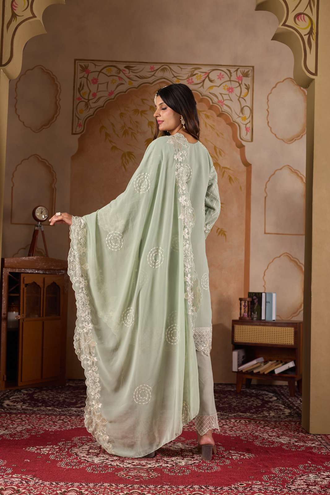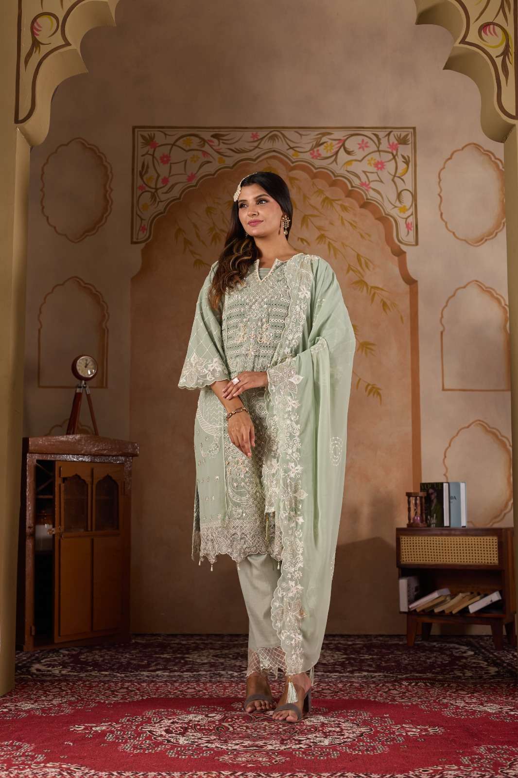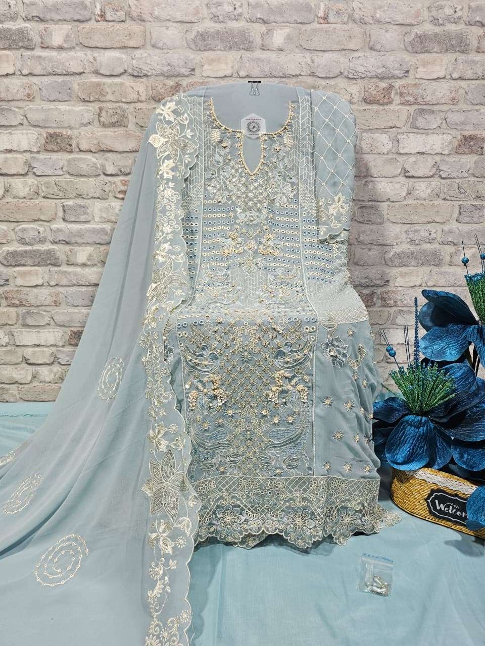 ━━━━━━━━━━━━━━━━━━ *🔴 PRODUCT DETAILS 🔴* ━━━━━━━━━━━━━━━━━━ 👗 Top :- *Faux Georgette with heavy embroidery, handwork & cutwork* 🧵 Inner :- *Heavy Dull Santoon* 👖 Pant :- *Heavy Dull Santoon* 🧣 Dupatta :- *Faux Georgette with heavy embroidery work & two-side cutwork*