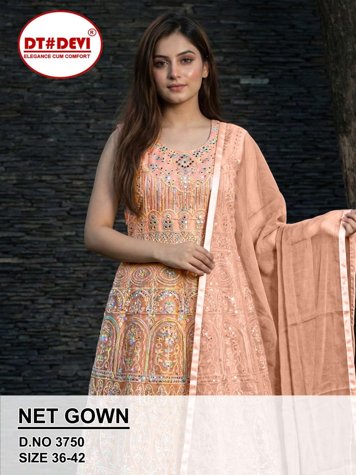 🌟 D.NO 3750 🌟NET GOWN 🌟SIZE - 36-38-40-42 🌟COLOURS - 2 🌟1 SET - 8 PCS 🌟FABRIC - NET WORK WITH STONE 🌟RATE - 965/-