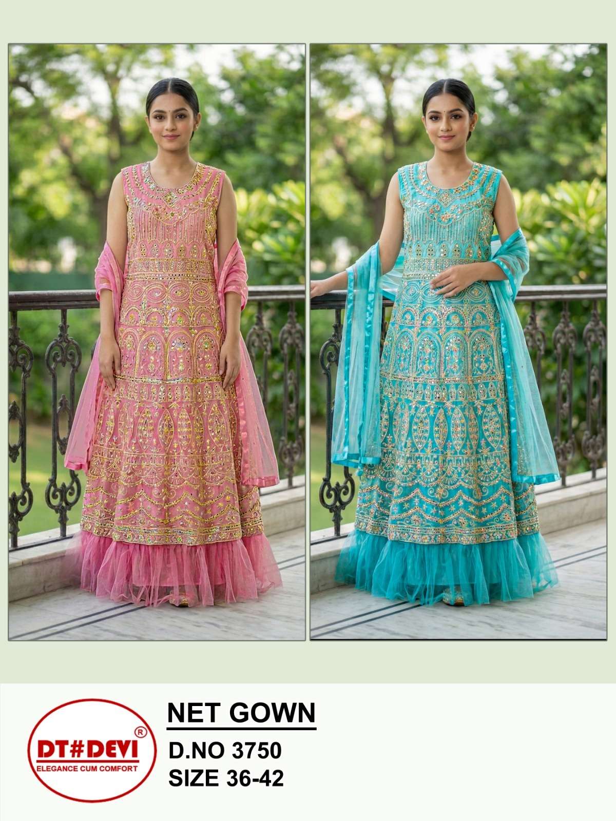 D NO 3750 NET GOWN COLLECTION manufacturers surat