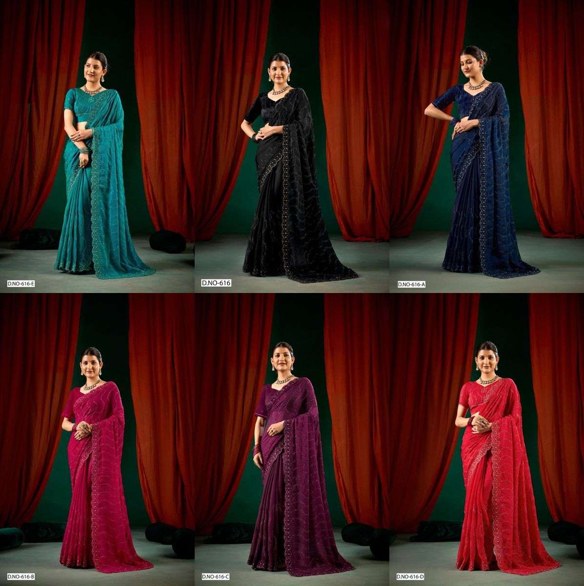 D NO 616 TO 616E by DURGA FASHION saree Collection manufacturer surat