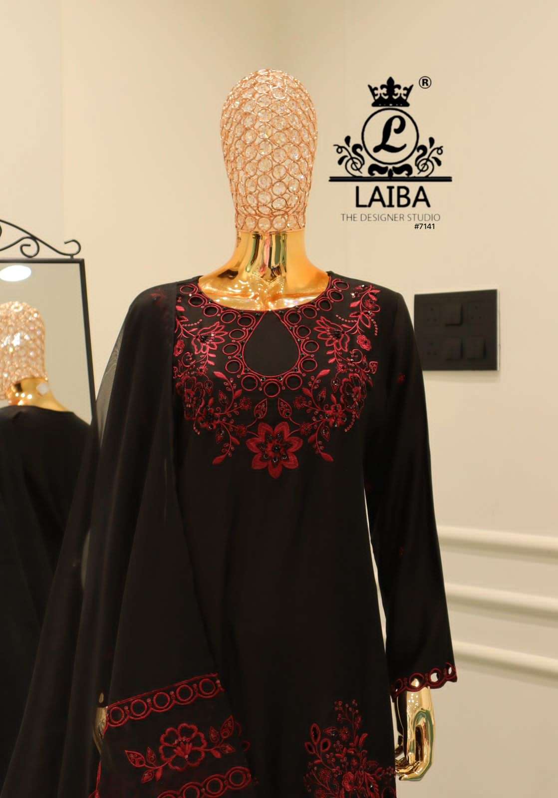 *LAIBA THE DESIGNER STUDIO PRESENTS* D no:- #7141 Top:-Pure cotton silk Duppata:Pure organza Farshi:- Pure cotton silk Size:-L-XL-XXL Rate:-1699/- Colors:.- BLACK |