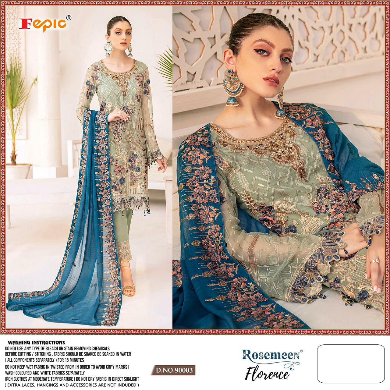 *Brand :* FEPIC *Catalog Name :* D No 90003 *Price :* ?1257 *Piece :* 1 *Total Price :* 1257 ( GST Extra ) *Size :* Unstitched *Fabric :* georgget *Availibility :* On Booking 100+single |