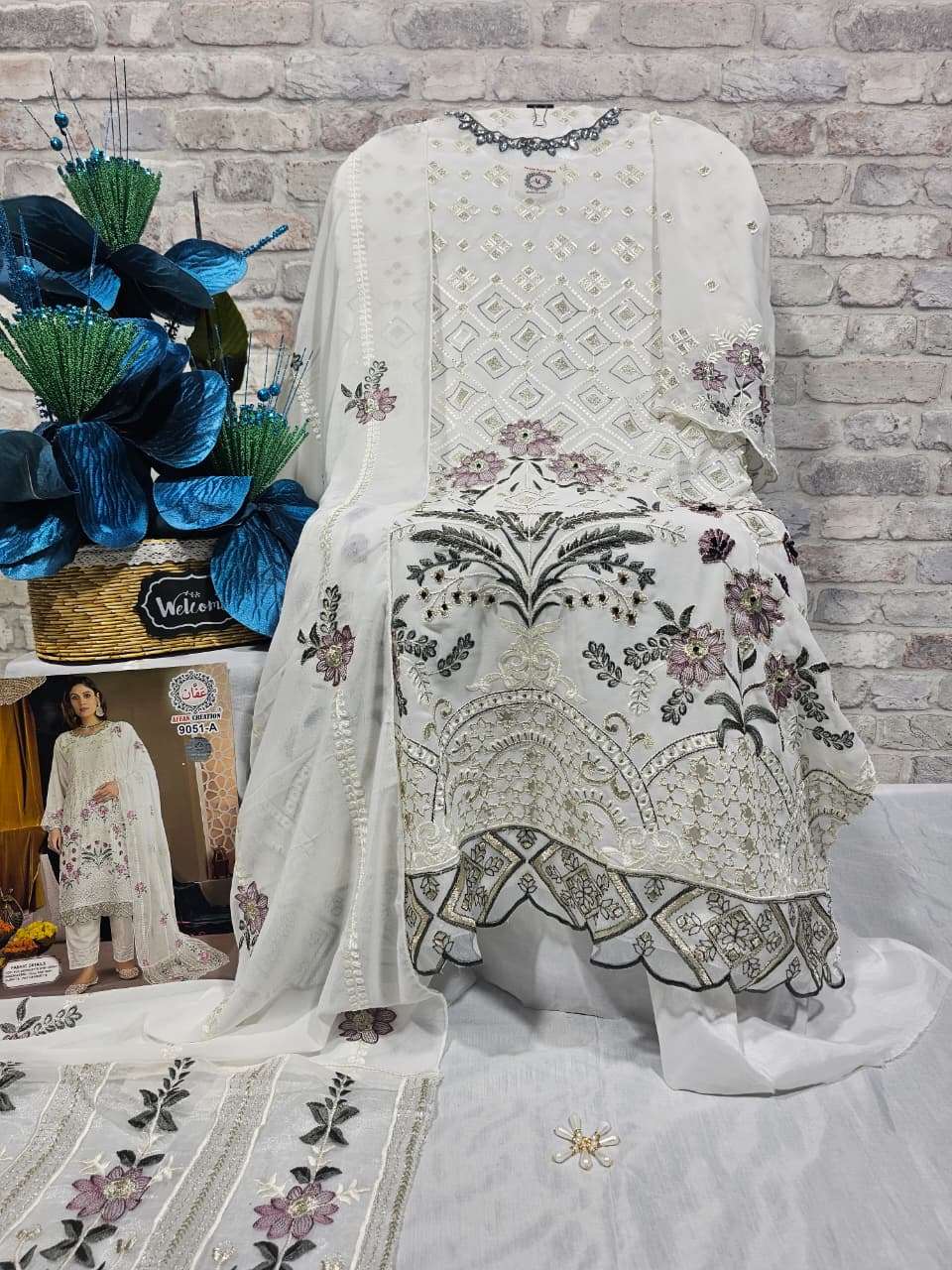 *DESCRIPTION* *~~~~~~~~~~~~~~~~* Designer stylish suit with elegant embroidery and pure handwork, featuring diamond stone patchwork on the neckline. Beautiful and delicate cutwork on the daman, paired with a georgette dupatta with two-side pallu work and cutwork, along with heavy dull santoon.