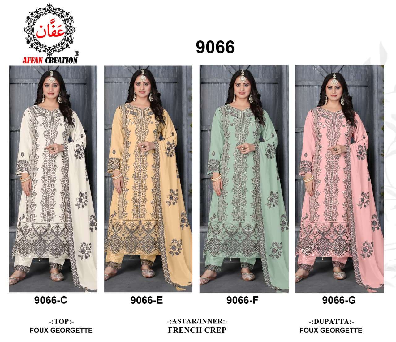D NO 9066 by AFFAN CREATION suit collection manufacturers surat