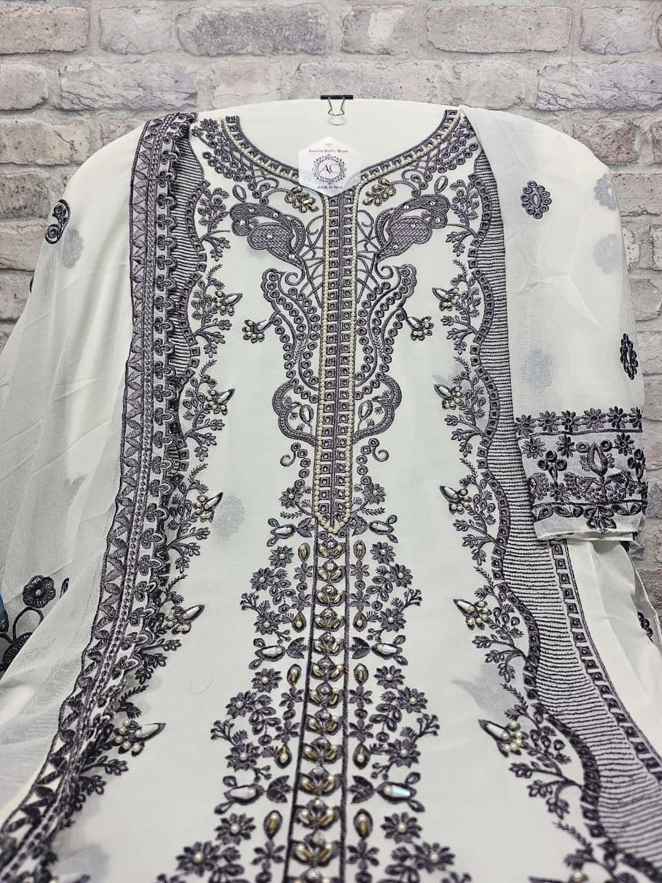 *DESCRIPTION* *~~~~~~~~~~~~~~~~* Designer stylish suit with elegant embroidery With pure handwork & Boring Work.Beautiful and delicate cutwork on the daman paired With French Crep With Patchwork. Georgette Dupatta With Two-Side Cutwork.