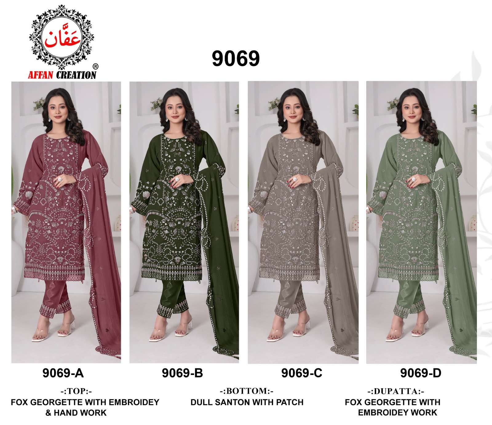 D No 9069 by AFFAN CREATION suit collection manufacturers surat