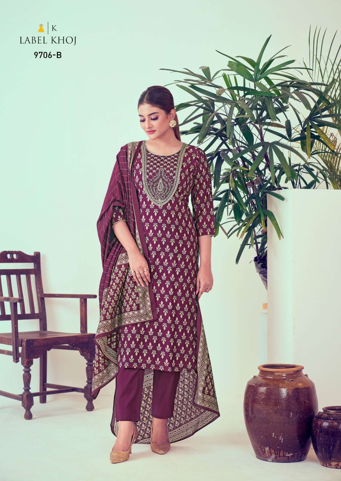 A product of Khazana Suit BRAND NAME – *LABEL KHOJ* D.NO. 9705A TO 9706B Top Modal Chanderi silk with Cord Embroidery Bottom Roman silk with pocket Dupatta Chanderi silk Foil print Size M L XL XXL RATE – 1099/- PER PCS GST EXTRA