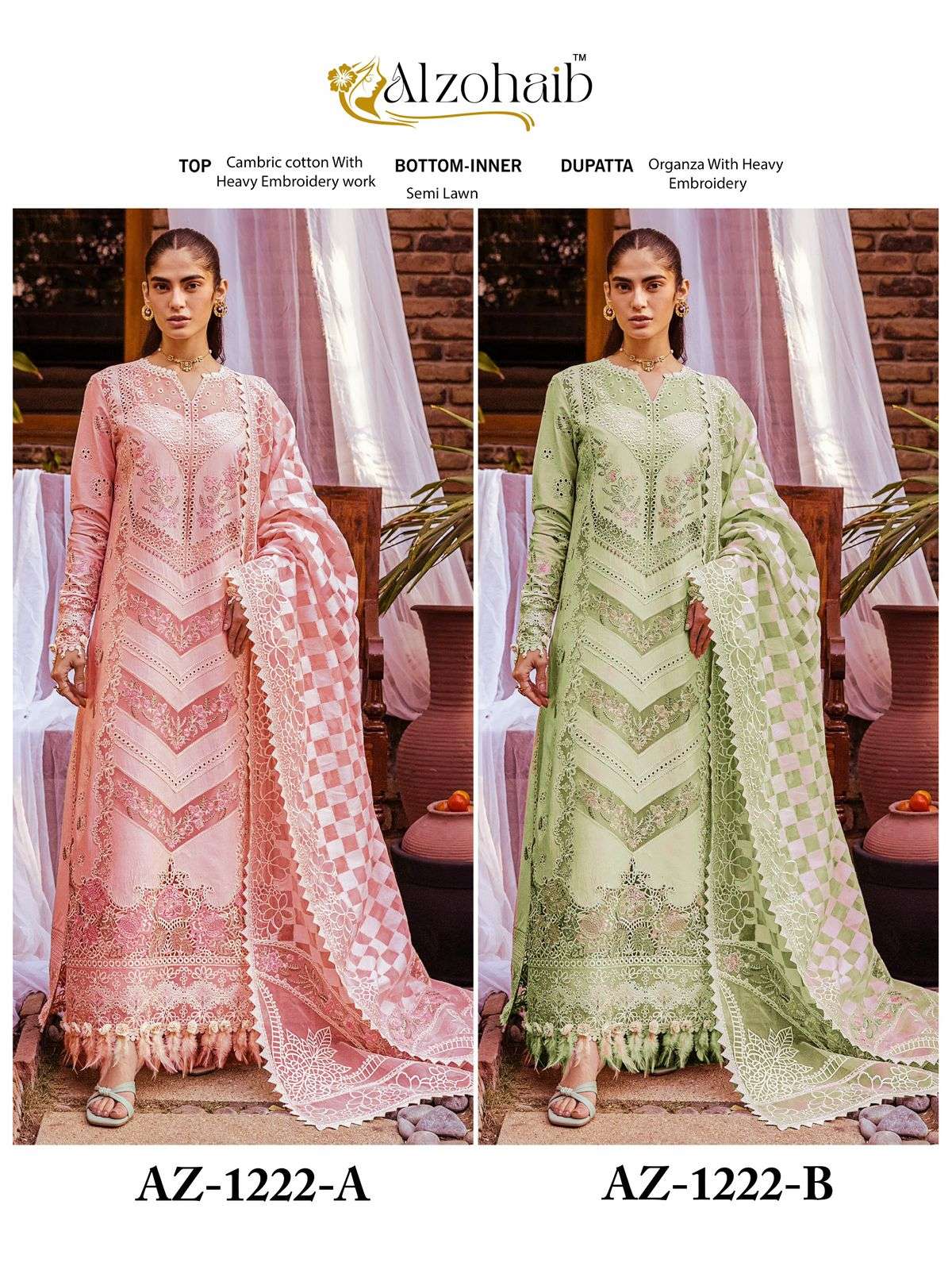Buy Online D No AZ 1222 A 1222 B By ALZOHAIB suit collection manufacturer Surat 2 Pcs of Full Catalogue at Wholesale Price. Looking for D No AZ 1222 A 1222 B By ALZOHAIB suit collection manufacturer Surat Full Catalouge at Best Price? Buy Now D No AZ 1222 A 1222 B By ALZOHAIB suit collection manufacturer Surat at Wholesale Rate of Rs 2198 with Total 2 Pcs from authroized dealer and supplier of BRAND'S Brand. Cost of Each piece is just only Rs 1099 which is very low and affordable price to resale the product in your retail store ,This is Surat based Wholesale Supplier & Dealer of BRAND'S Brand. Click on Brand name to Know more about BRAND'S Brand's products.Call or Whatsapp on 9898838984 for booking or enquiry