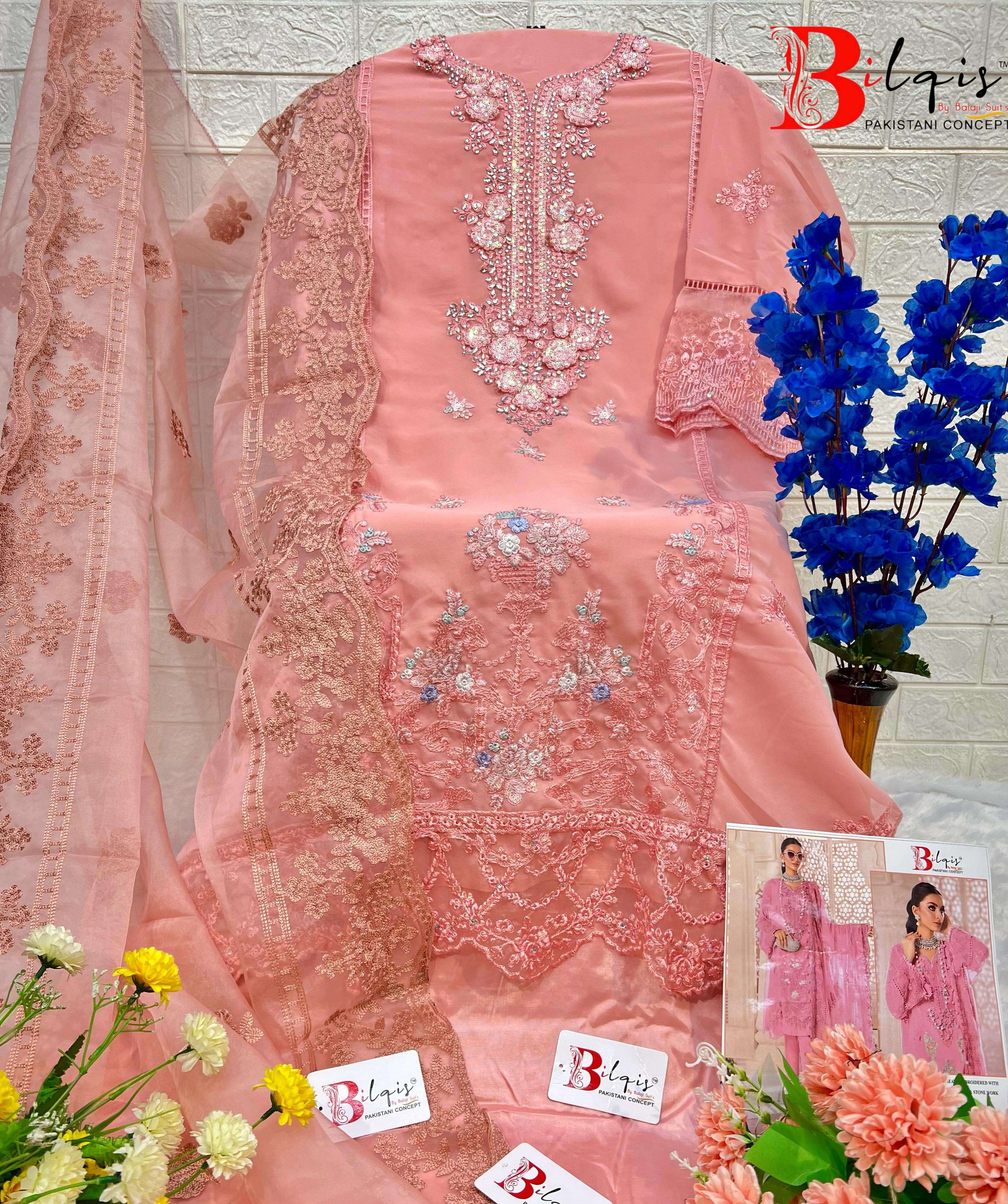 *TOP -* FOX GEORGETTE HEAVY EMBROIDERED WITH APPLIQ & STONE WORK *INNER BOTTOM -* HEAVY SANTOON *DUPPATTA -* ORGANZA HEAVY EMBROIDERED