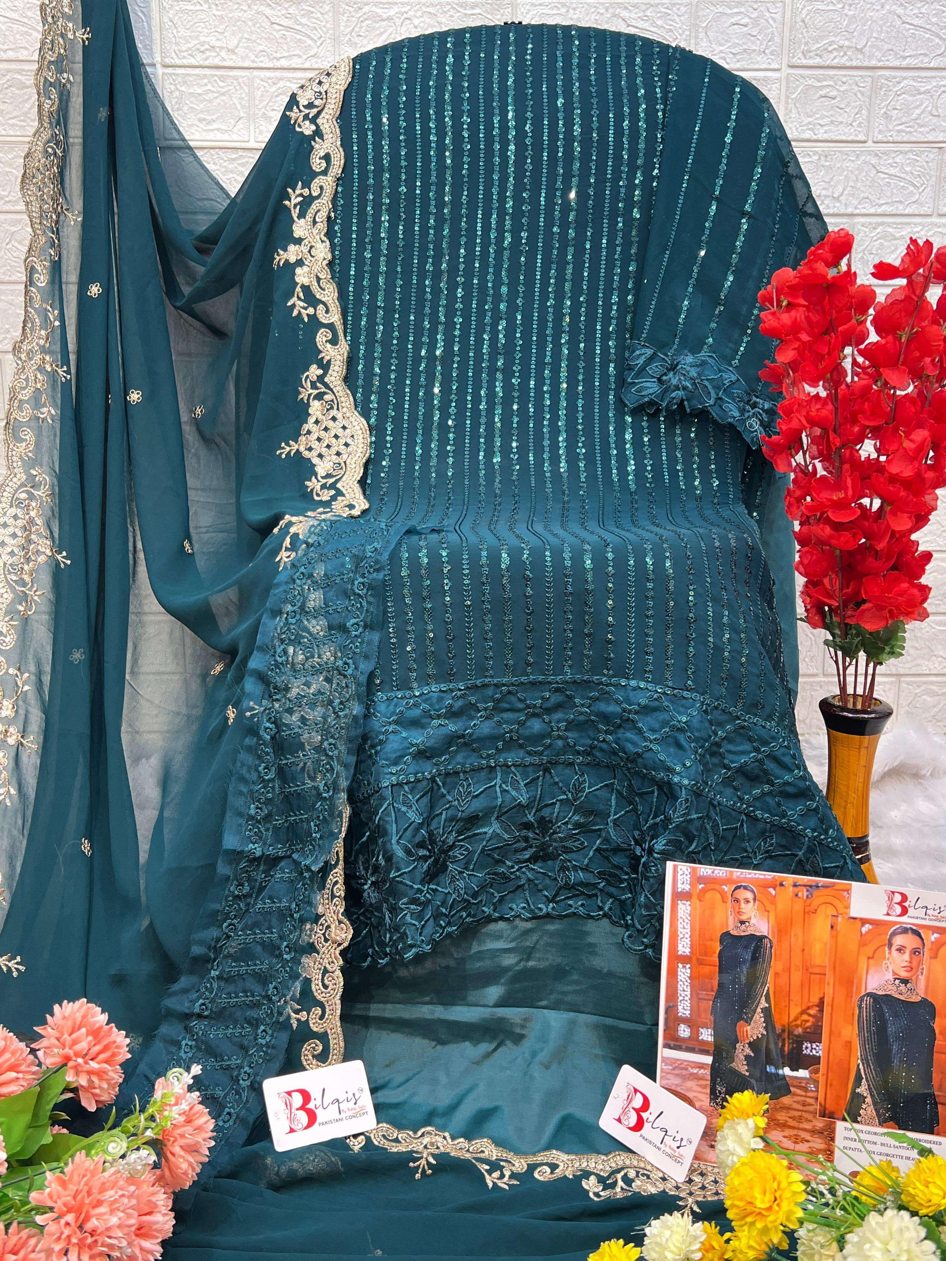 *TOP -* FOX GEORGETTE HEAVY EMBROIDERED *INNER BOTTOM -* DULL SANTOON WITH EMB PATCH *DUPPATTA -* FOX GEORGETTE HEAVY EMBROIDERED
