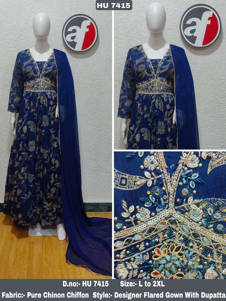 Buy Online D NO HU 7415 7416 7417 7418 by Anju fabric GOWN WITH DUPATTA collection manufacturers surat 4 Pcs of Full Catalogue at Wholesale Price. Looking for D NO HU 7415 7416 7417 7418 by Anju fabric GOWN WITH DUPATTA collection manufacturers surat Full Catalouge at Best Price? Buy Now D NO HU 7415 7416 7417 7418 by Anju fabric GOWN WITH DUPATTA collection manufacturers surat at Wholesale Rate of Rs 12600 with Total 4 Pcs from authroized dealer and supplier of BRAND'S Brand. Cost of Each piece is just only Rs 3150 which is very low and affordable price to resale the product in your retail store ,This is Surat based Wholesale Supplier & Dealer of BRAND'S Brand. Click on Brand name to Know more about BRAND'S Brand's products.Call or Whatsapp on 9898838984 for booking or enquiry