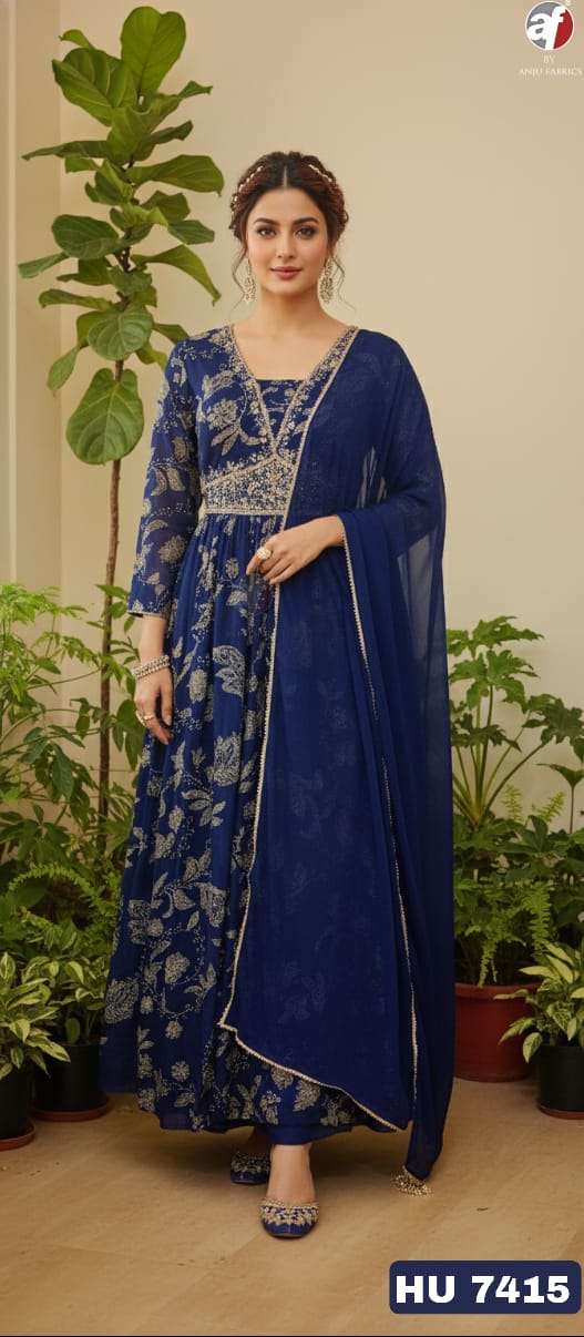 D NO HU 7415 7416 7417 7418 by Anju fabric GOWN WITH DUPATTA collection manufacturers surat