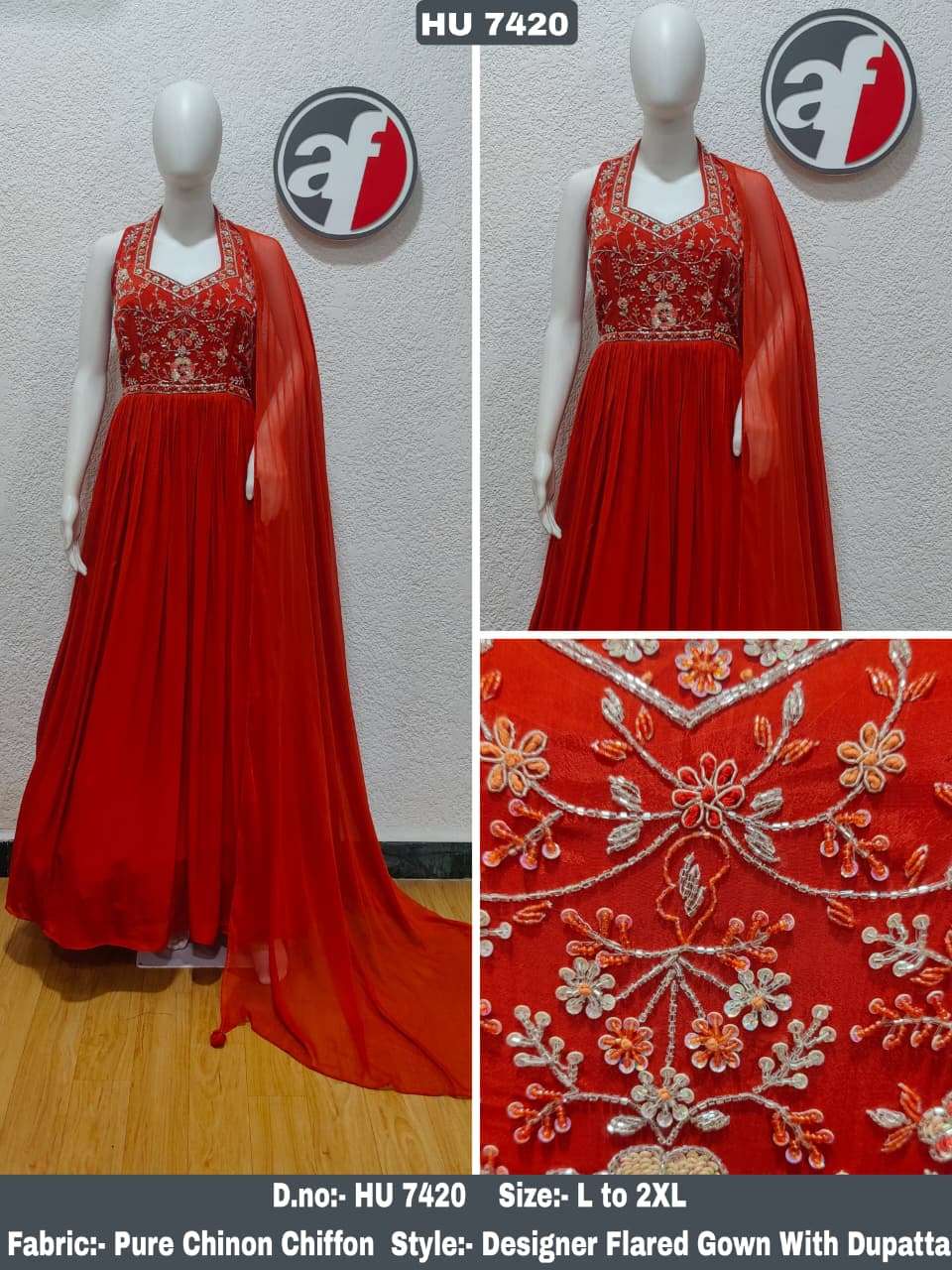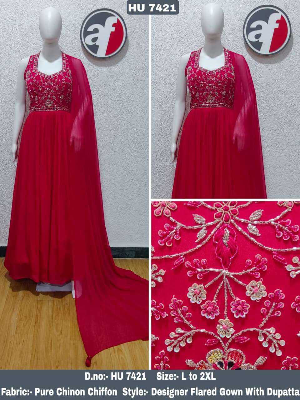 🧵 *DESIGNER FLARED GOWN WITH DUPATTA* 🧵