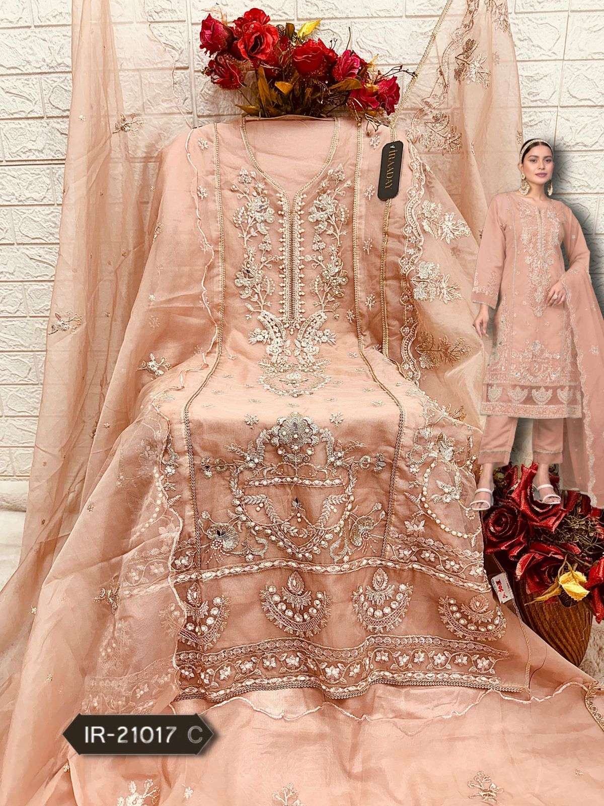 _*BRAND NAME*_:- FEPIC _*CATALOUGE NAME*_:- *iRAADAY* _*D NO*_:- iR 21017 _*Top*_:- ORGANZA EMBROIDERED _*Dupatta*_:- ORGANZA EMBROIDERED _*Bottom*_:- SANTOON _*INNER*_:- SANTOON _*RATE*_:- 931/- |