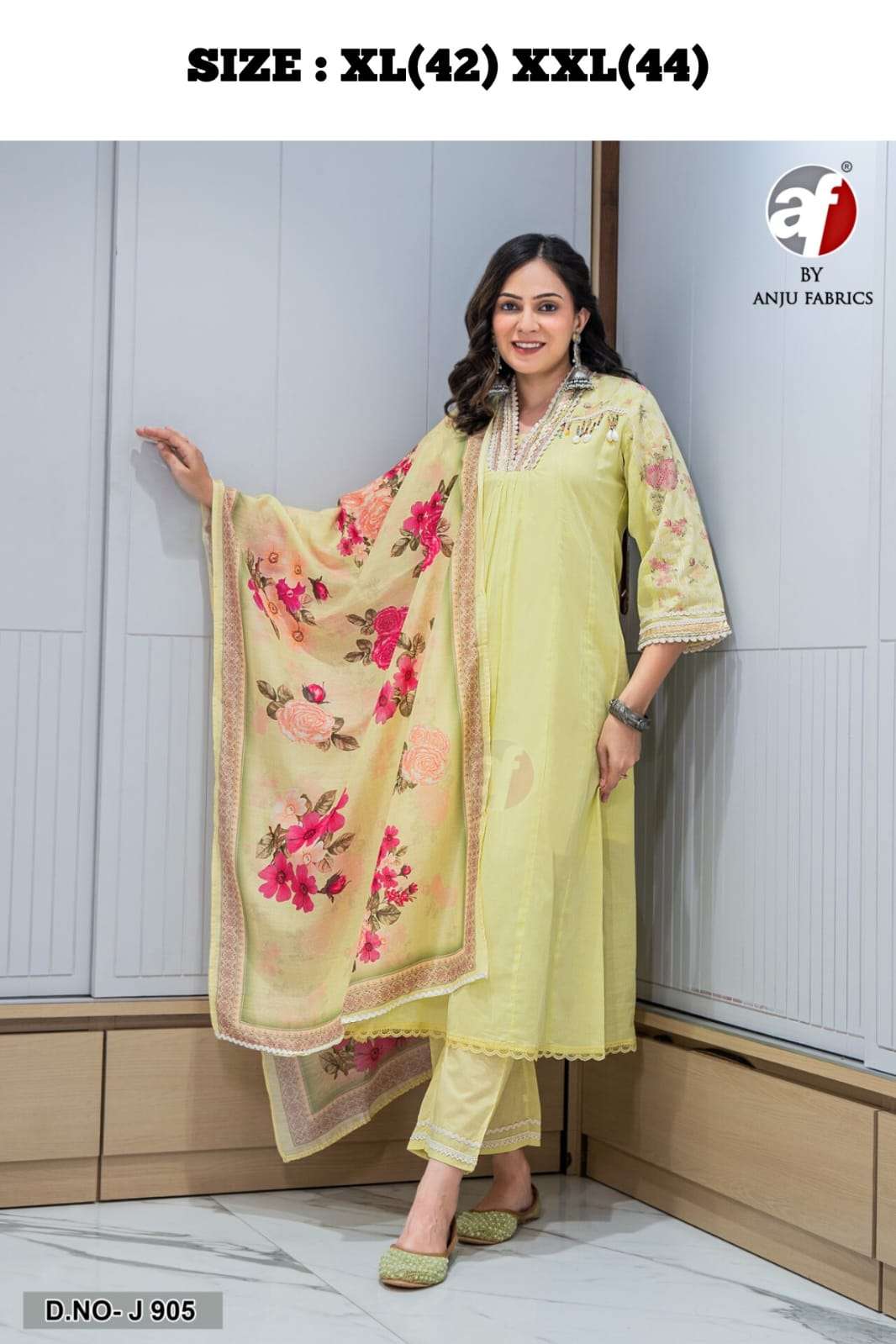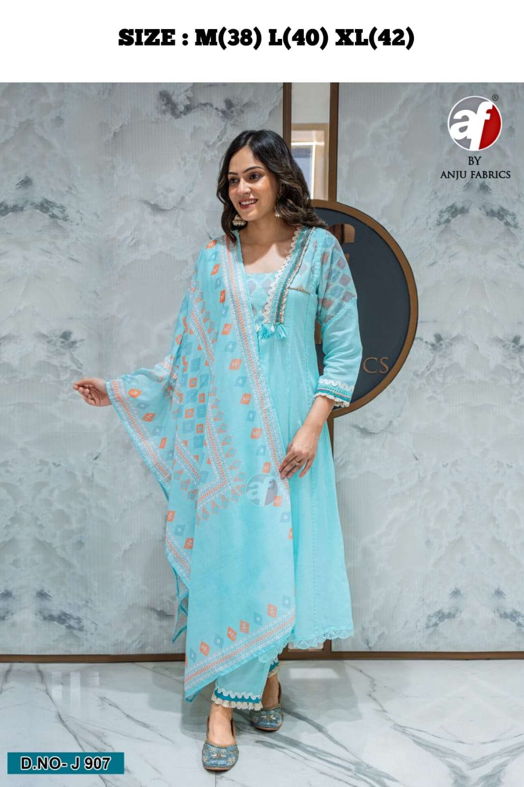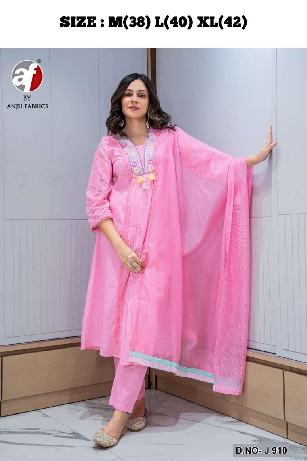 D NO J 910 906 905 907 909 by Anju fabric ANARKALI KURTI PANT WITH DUPATTA collection manufacturer Surat