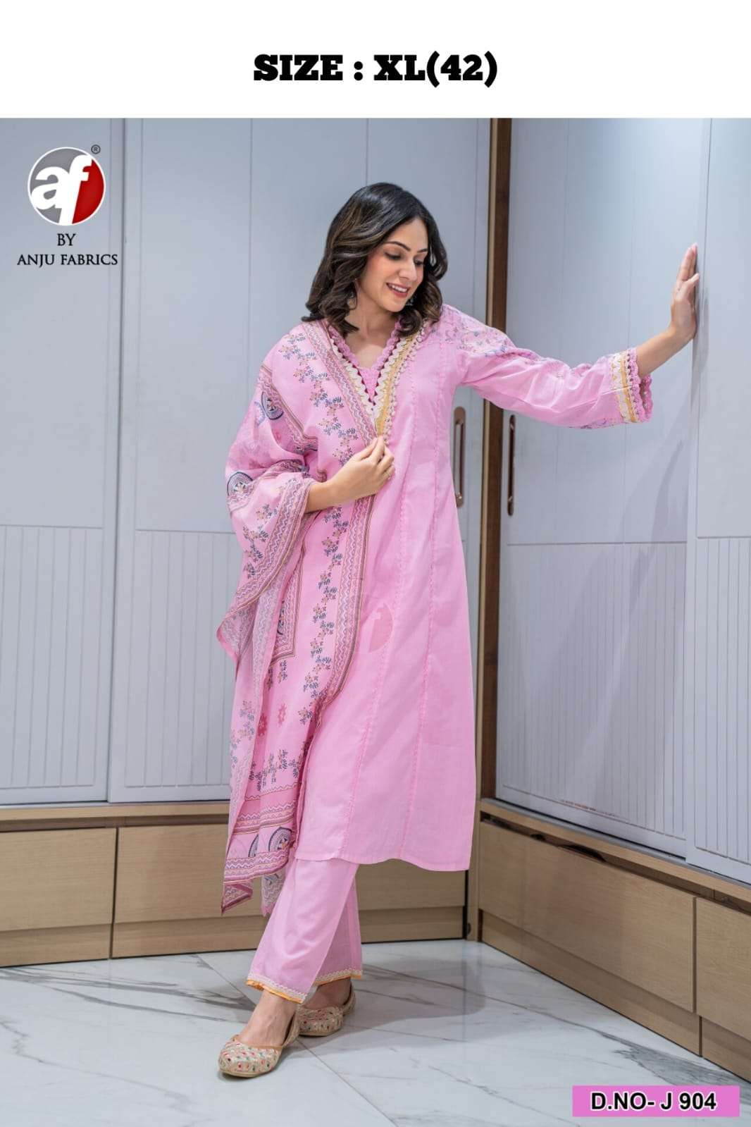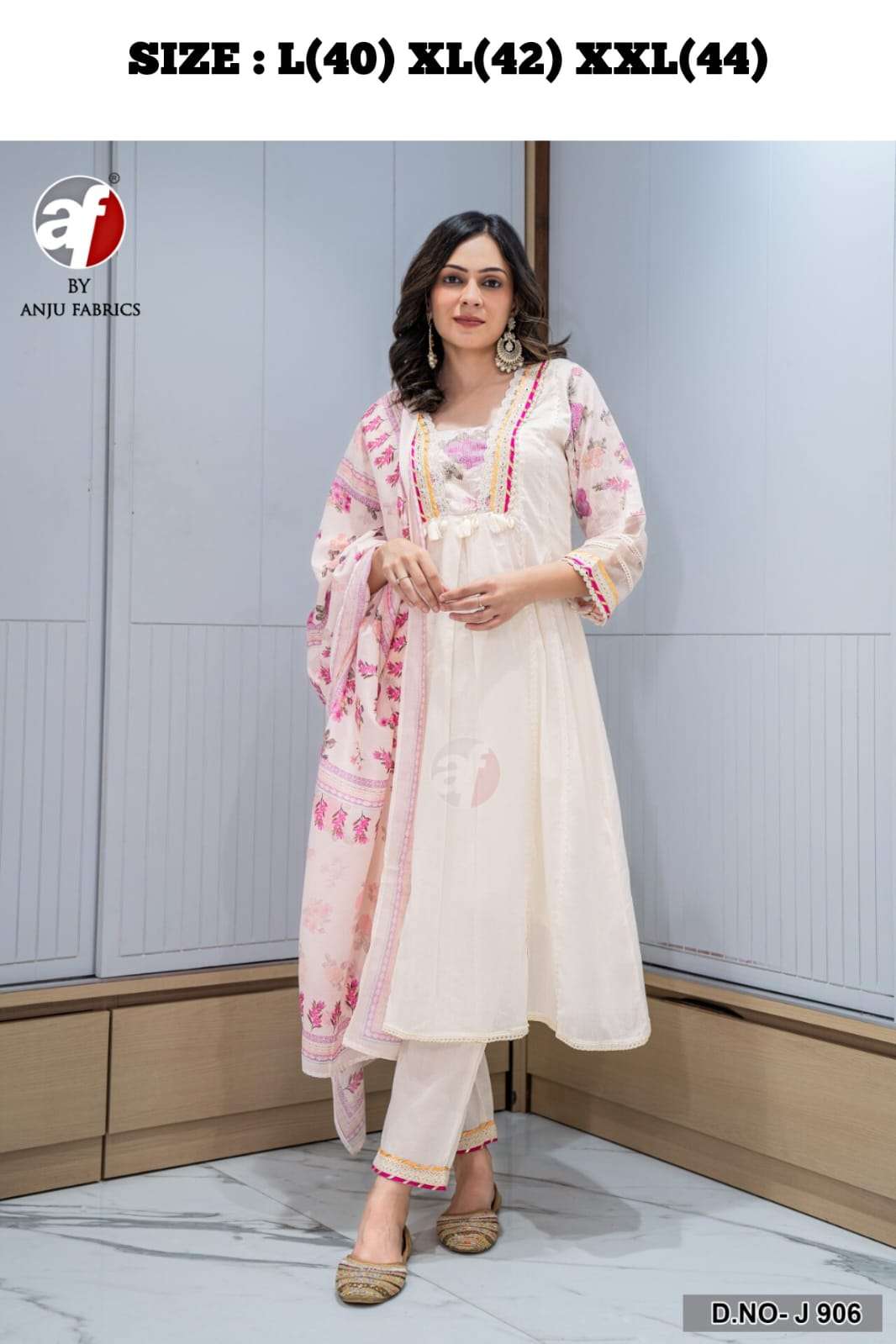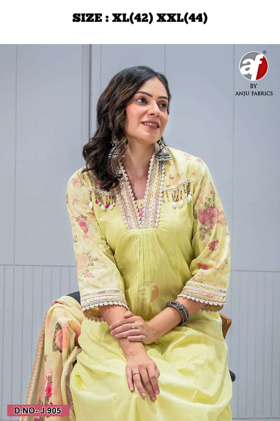 D NO J 910 906 905 907 909 by Anju fabric ANARKALI KURTI PANT WITH DUPATTA collection manufacturer Surat