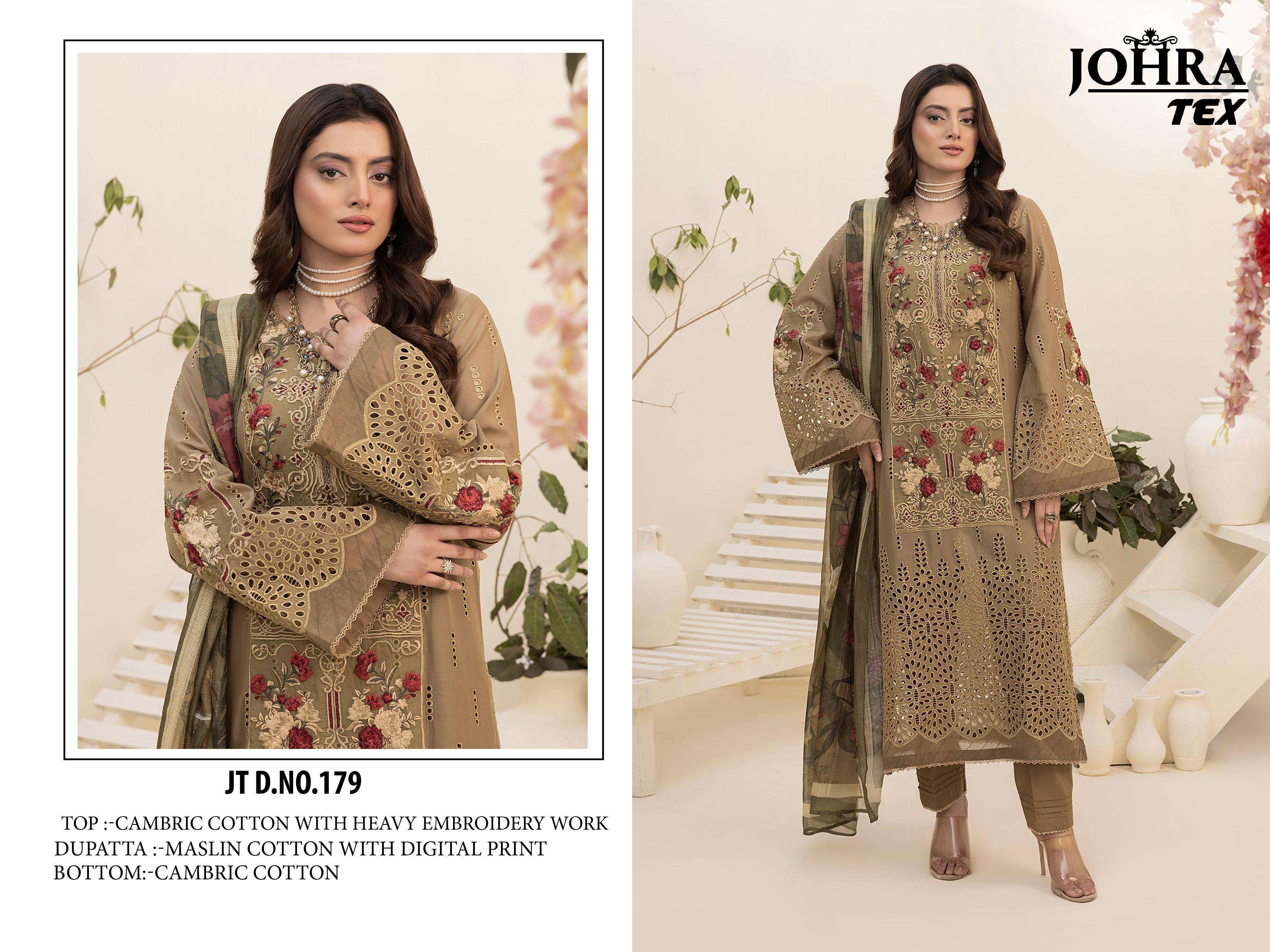 Buy Online D NO JT 179 H I by JOHRA TEX suit collection manufacturers surat 5 Pcs of Full Catalogue at Wholesale Price. Looking for D NO JT 179 H I by JOHRA TEX suit collection manufacturers surat Full Catalouge at Best Price? Buy Now D NO JT 179 H I by JOHRA TEX suit collection manufacturers surat at Wholesale Rate of Rs 5250 with Total 5 Pcs from authroized dealer and supplier of BRAND'S Brand. Cost of Each piece is just only Rs 1050 which is very low and affordable price to resale the product in your retail store ,This is Surat based Wholesale Supplier & Dealer of BRAND'S Brand. Click on Brand name to Know more about BRAND'S Brand's products.Call or Whatsapp on 9898838984 for booking or enquiry