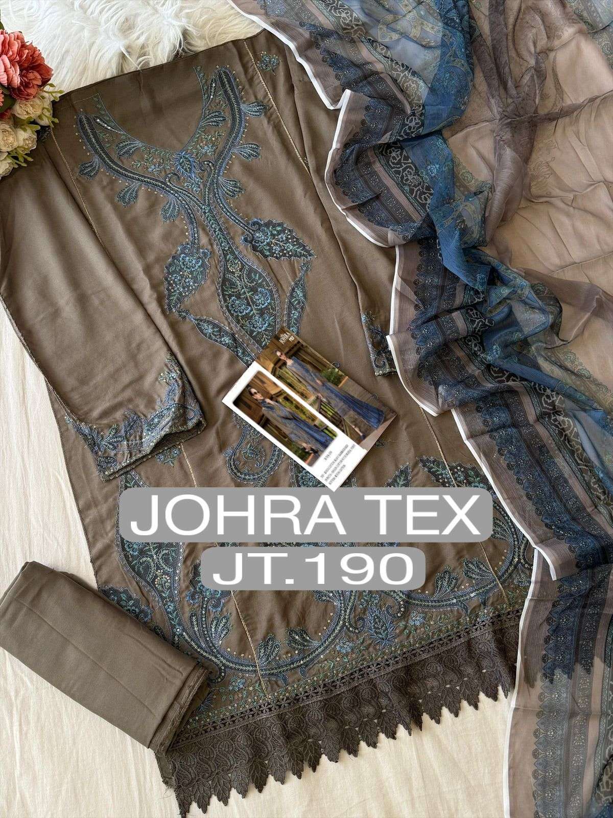 Buy Online D NO JT 190 A by JOHRA TEX suit collection manufacturers surat 1 Pcs of Full Catalogue at Wholesale Price. Looking for D NO JT 190 A by JOHRA TEX suit collection manufacturers surat Full Catalouge at Best Price? Buy Now D NO JT 190 A by JOHRA TEX suit collection manufacturers surat at Wholesale Rate of Rs 900 with Total 1 Pcs from authroized dealer and supplier of BRAND'S Brand. Cost of Each piece is just only Rs 900 which is very low and affordable price to resale the product in your retail store ,This is Surat based Wholesale Supplier & Dealer of BRAND'S Brand. Click on Brand name to Know more about BRAND'S Brand's products.Call or Whatsapp on 9898838984 for booking or enquiry