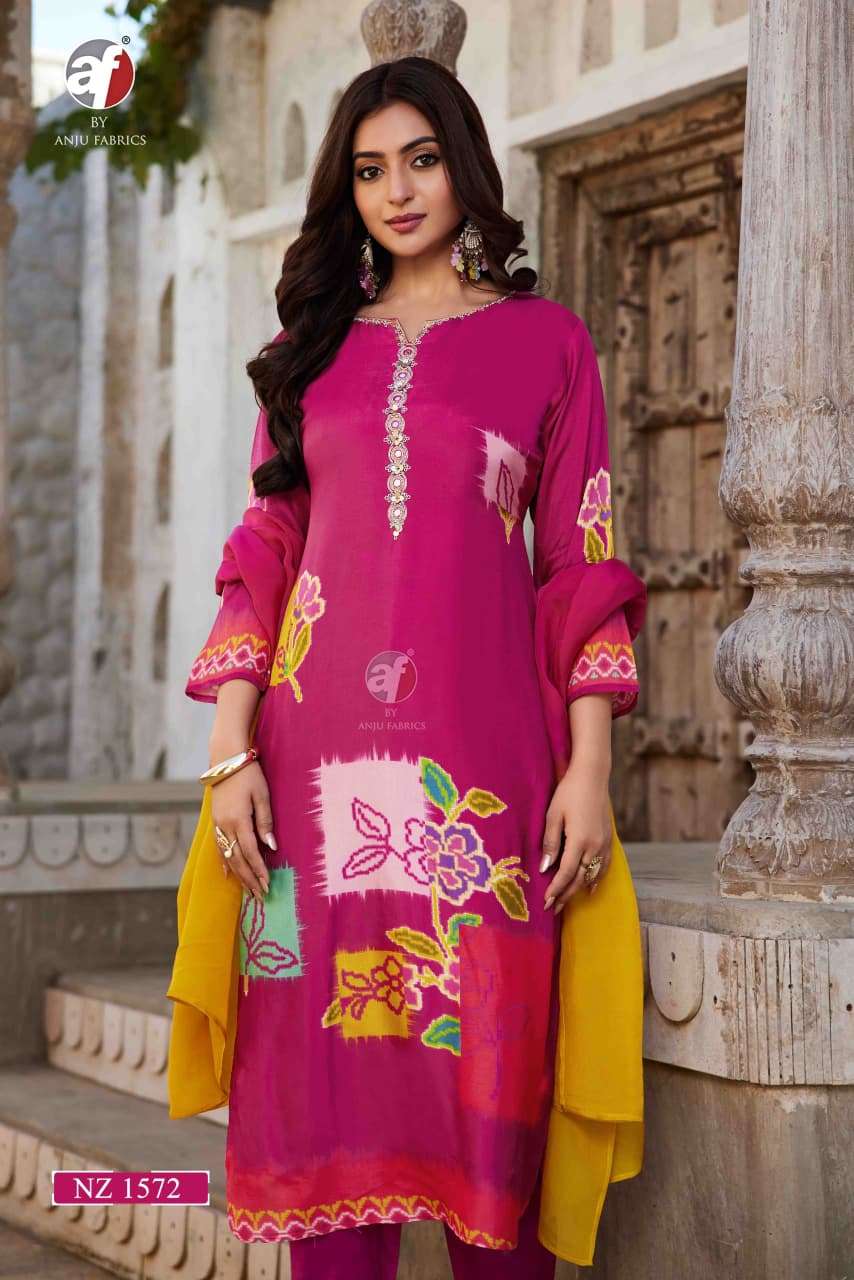 D NO NZ 1574 1573 1572 By Anju fabric KURTI PANT WITH DUPATTA collection manufacturers surat