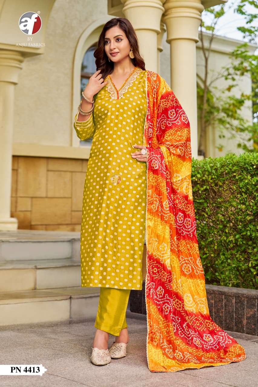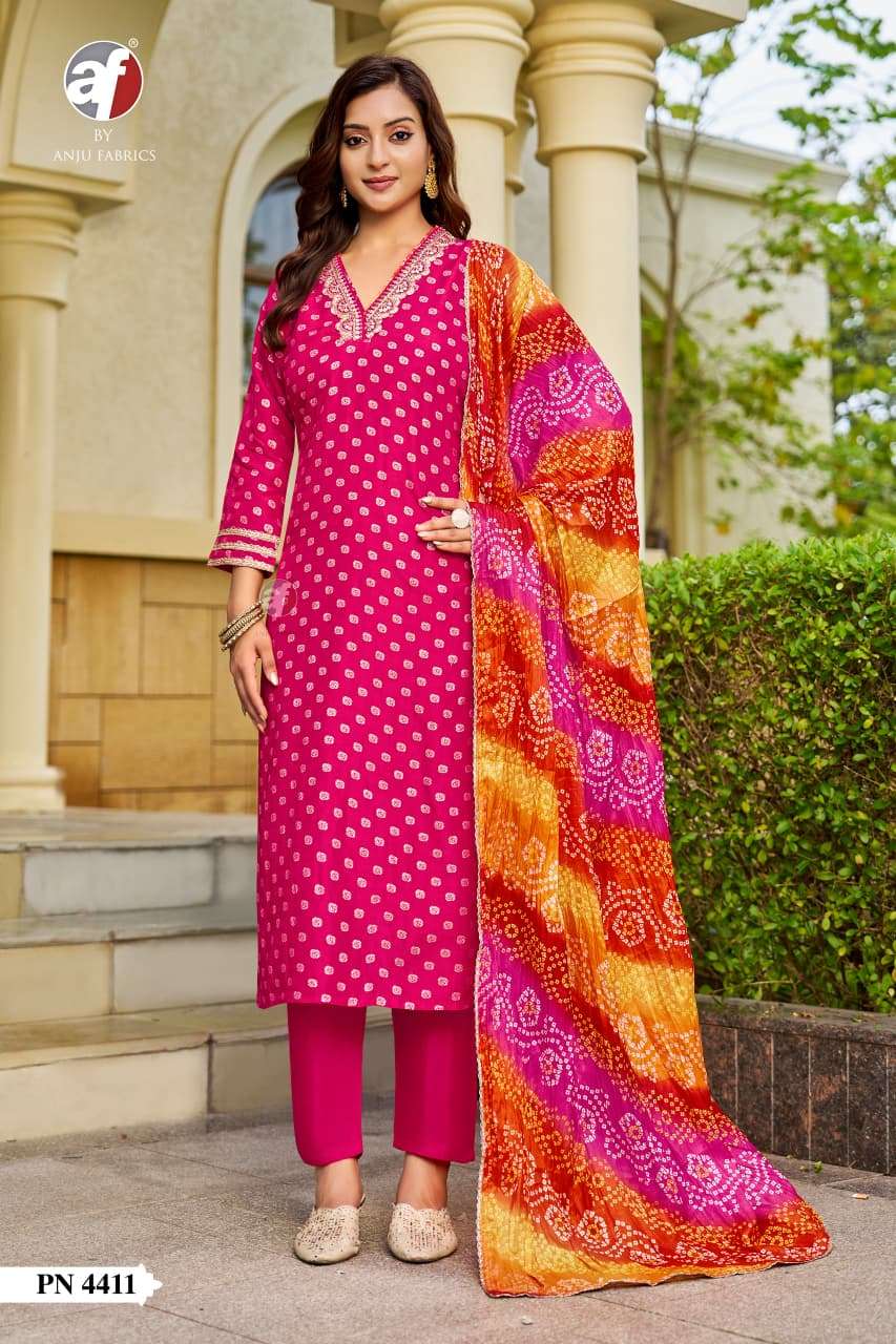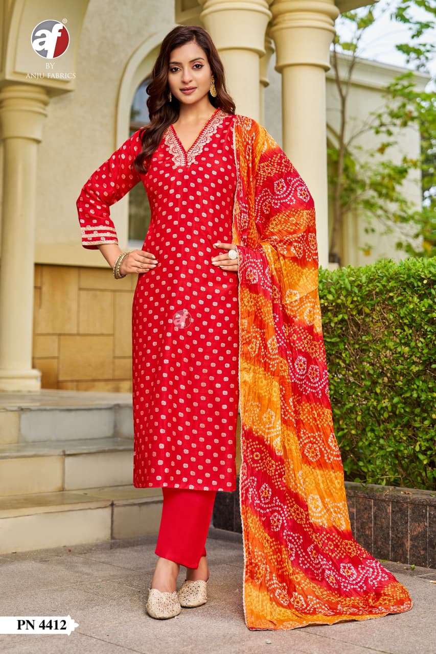 D NO PN 4412 4411 4413 By Anju fabric KURTI PANT WITH DUPATTA collection manufacturer Surat