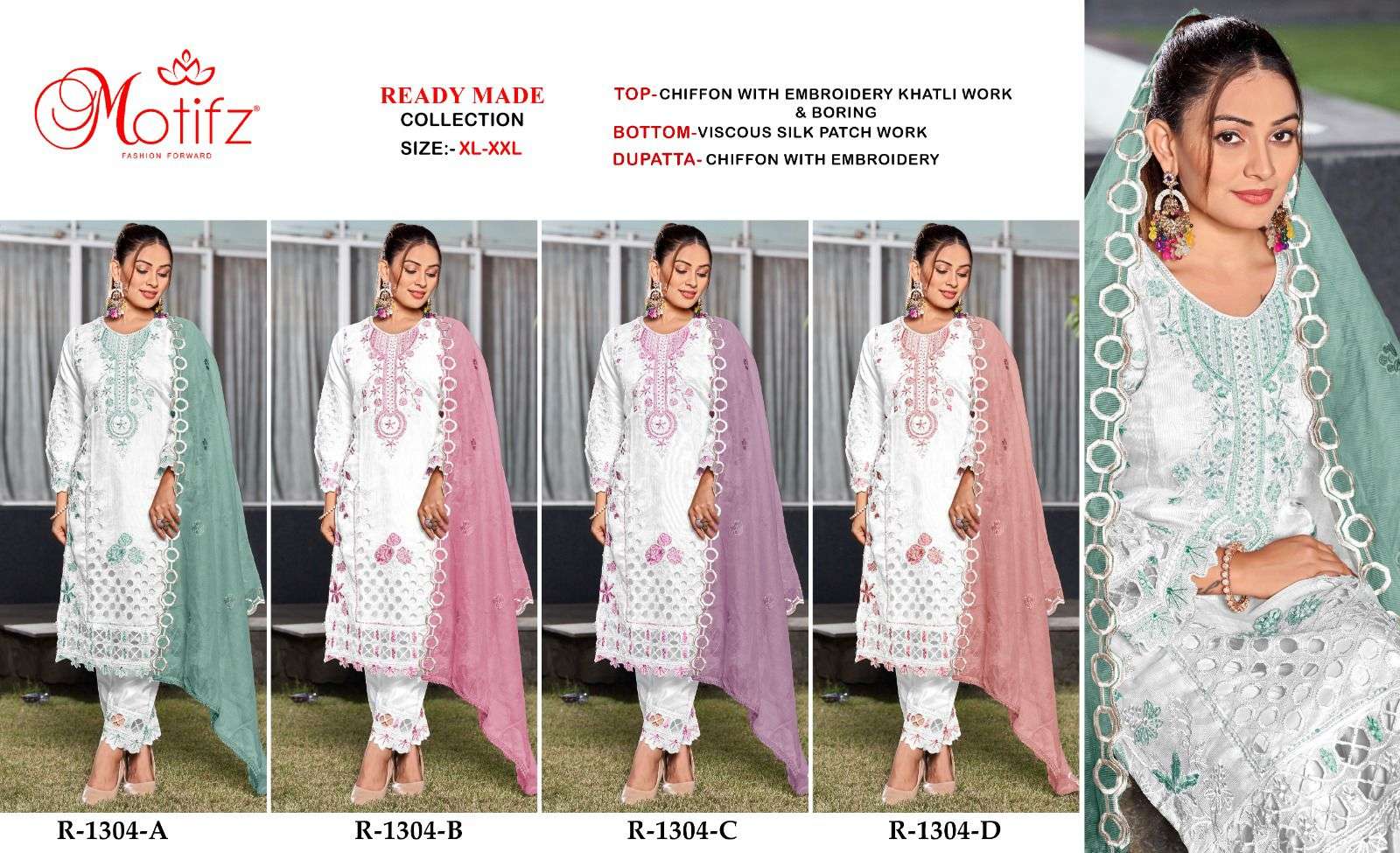Buy Online D no R 1304 by motifz suit collection manufacturers surat 4 Pcs of Full Catalogue at Wholesale Price. Looking for D no R 1304 by motifz suit collection manufacturers surat Full Catalouge at Best Price? Buy Now D no R 1304 by motifz suit collection manufacturers surat at Wholesale Rate of Rs 6396 with Total 4 Pcs from authroized dealer and supplier of BRAND'S Brand. Cost of Each piece is just only Rs 1599 which is very low and affordable price to resale the product in your retail store ,This is Surat based Wholesale Supplier & Dealer of BRAND'S Brand. Click on Brand name to Know more about BRAND'S Brand's products.Call or Whatsapp on 9898838984 for booking or enquiry