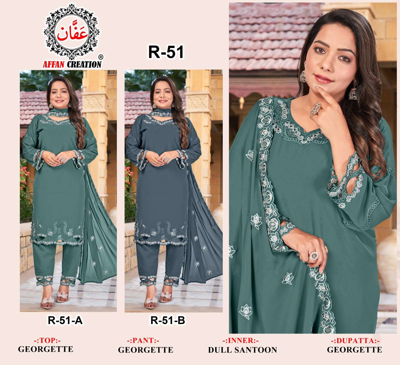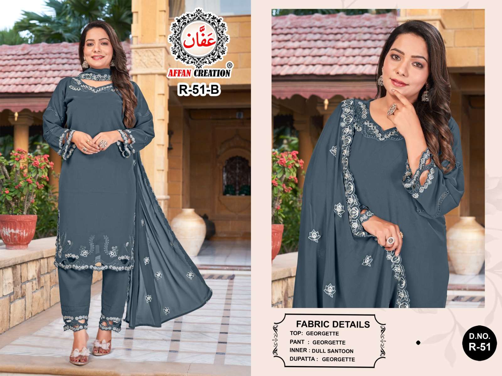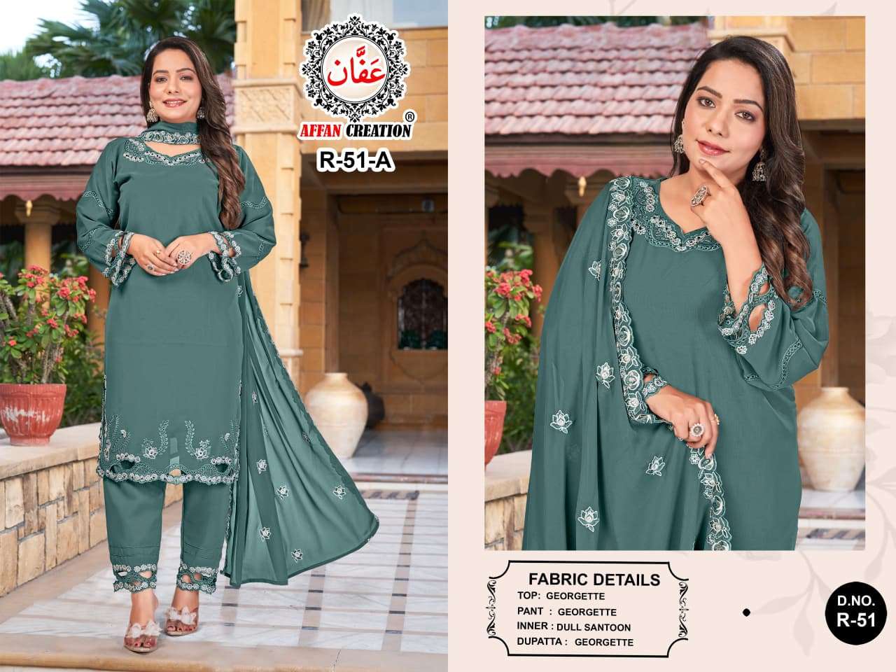 D NO R 51 by AFFAN CREATION Readymade Georgette Collection manufacturer Surat