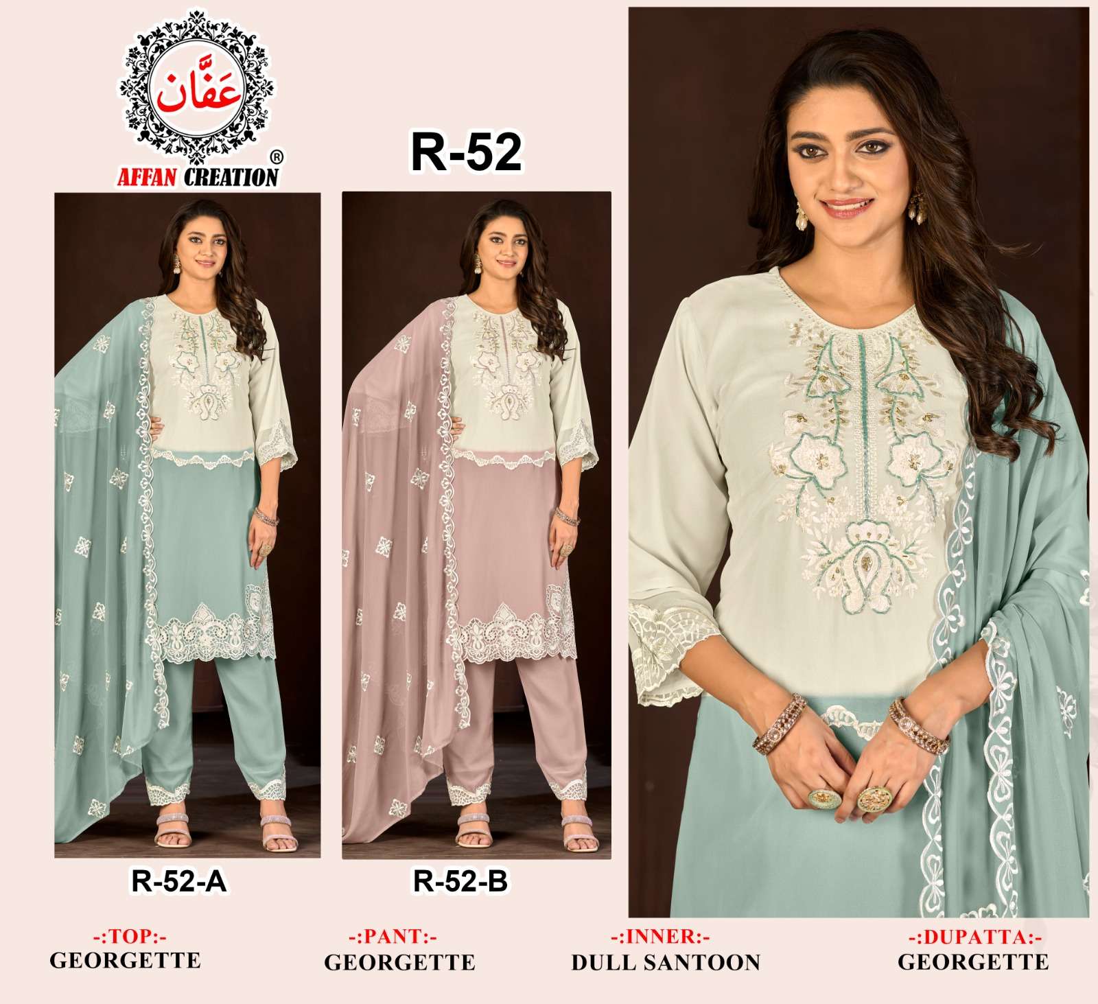 D NO R 52 by AFFAN CREATION suit collection manufacturer Surat