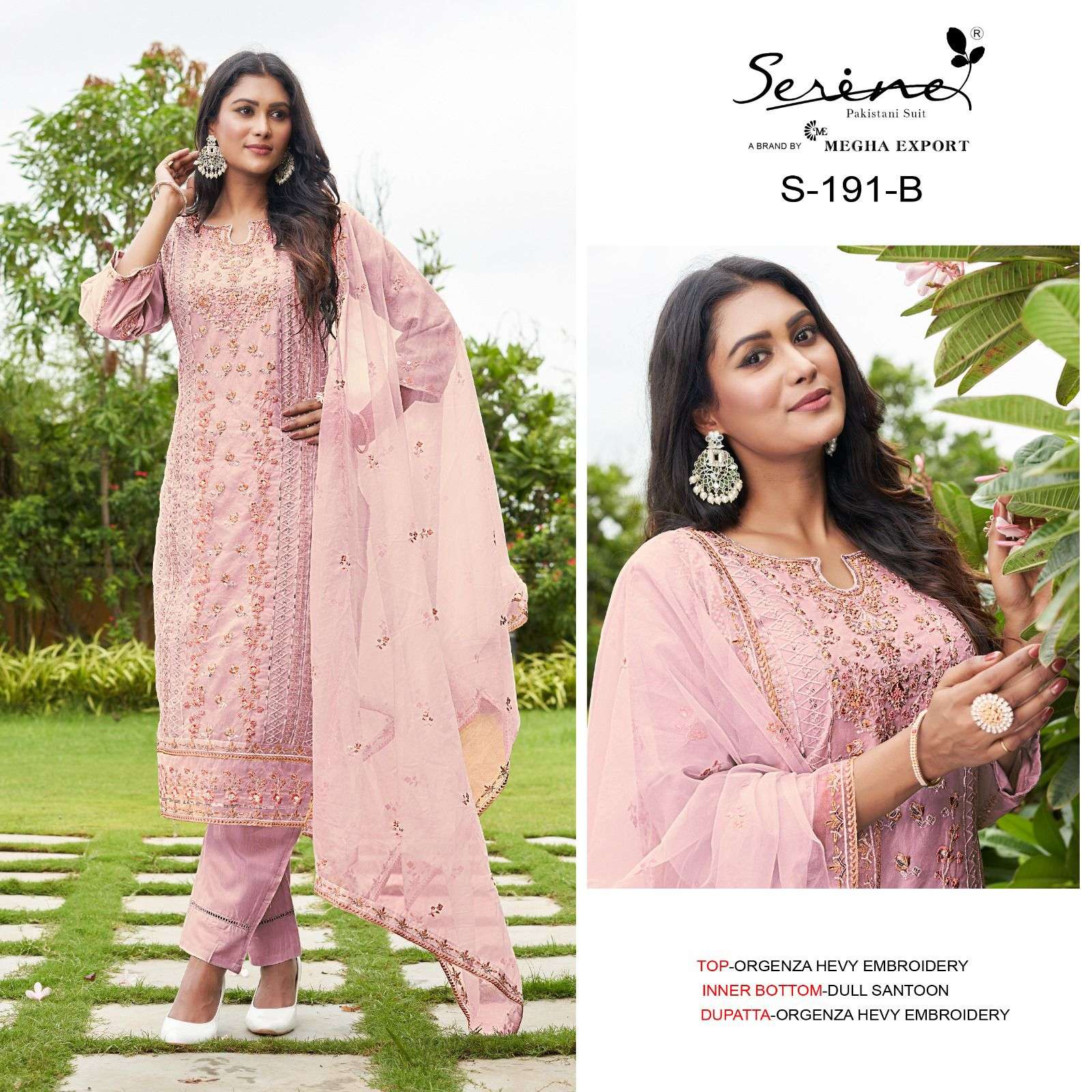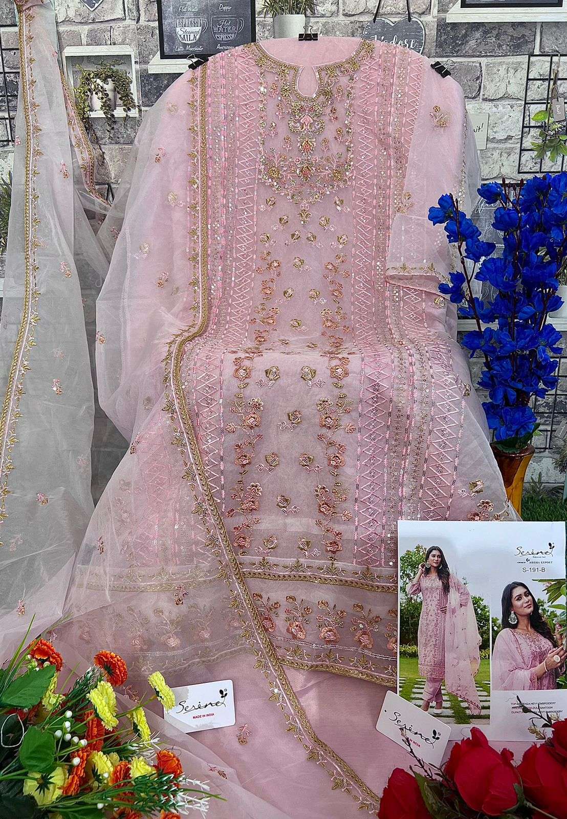 _*BRAND NAME*_:- SERINE®️ _*D NO*_:- S-191 _*Top*_:- ORGANZA HEAVY EMBROIDERED _*Dupatta*_:- ORGANZA HEAVY EMBROIDERED _*Bottom*_:- DULL SANTOON _*Inner*_:- DULL SANTOON _*RATE*_:- 1199/-