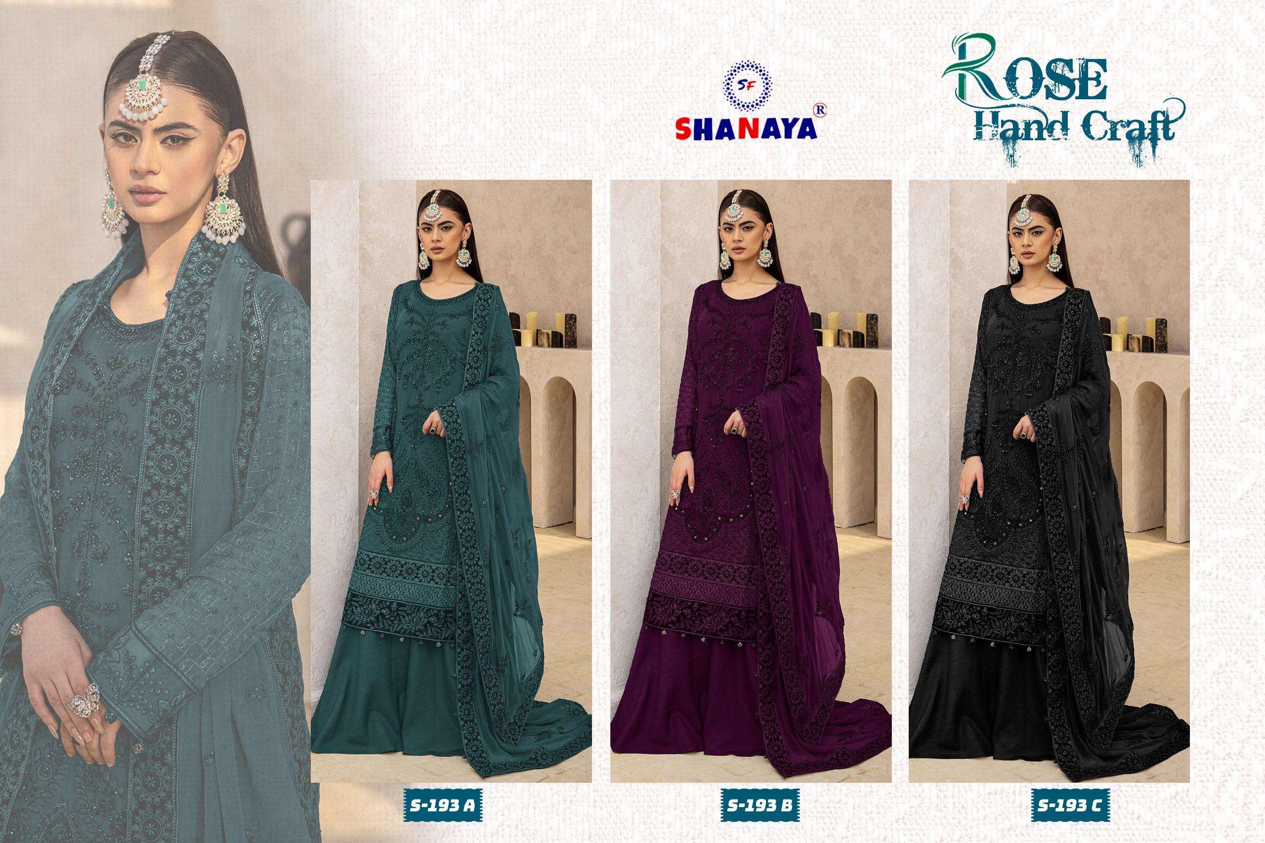Buy Online D NO S 193 EDITION ROSE HAND CRAFT by SHANAYA fashion suit collection manufacturer surat 3 Pcs of Full Catalogue at Wholesale Price. Looking for D NO S 193 EDITION ROSE HAND CRAFT by SHANAYA fashion suit collection manufacturer surat Full Catalouge at Best Price? Buy Now D NO S 193 EDITION ROSE HAND CRAFT by SHANAYA fashion suit collection manufacturer surat at Wholesale Rate of Rs 4197 with Total 3 Pcs from authroized dealer and supplier of Shanaya Brand. Cost of Each piece is just only Rs 1399 which is very low and affordable price to resale the product in your retail store ,This is Surat based Wholesale Supplier & Dealer of Shanaya Brand. Click on Brand name to Know more about Shanaya Brand's products.Call or Whatsapp on 9898838984 for booking or enquiry