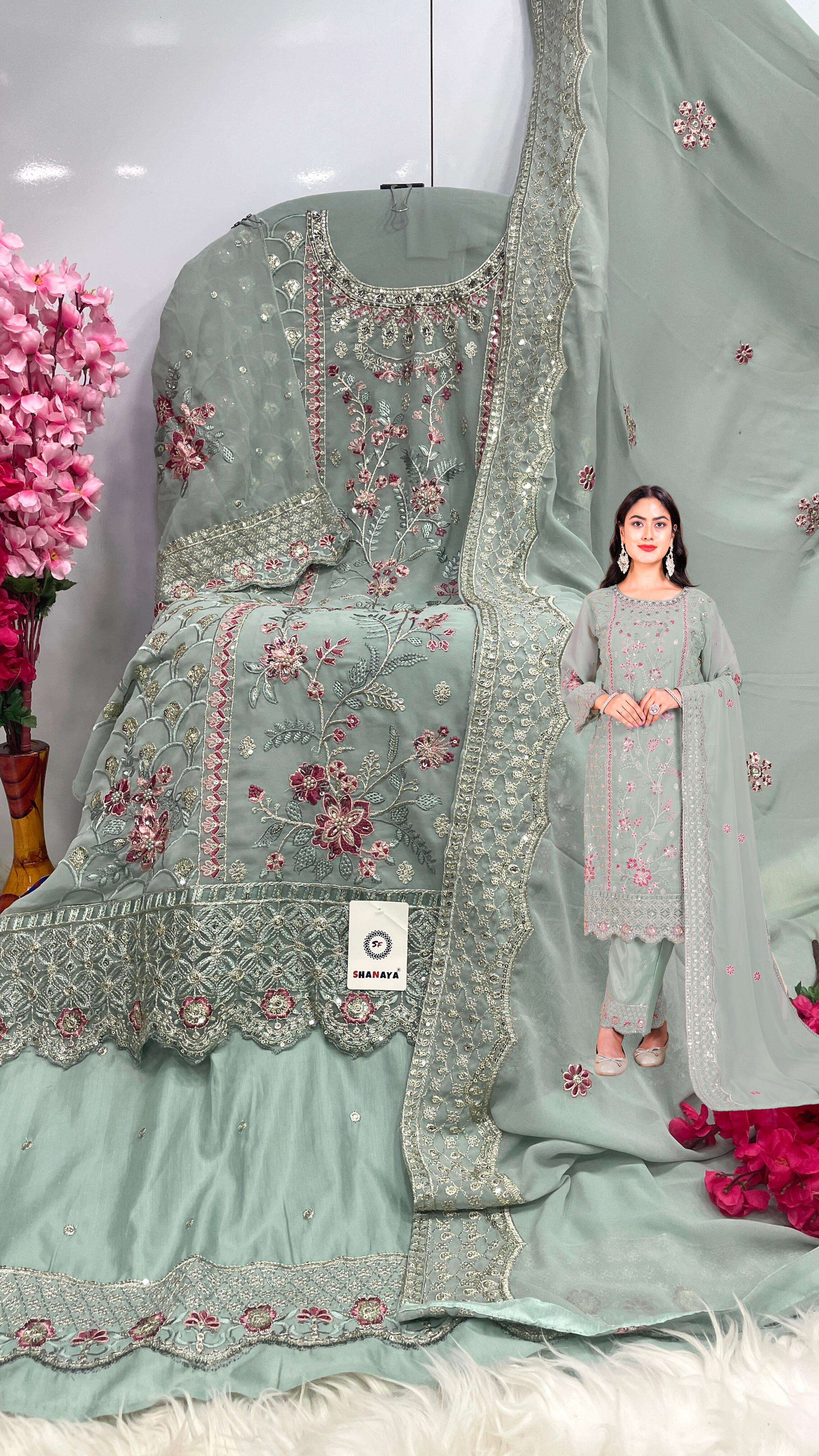 _*Top*_🔹 *FOX GEORGETTE* EMBROIDERY SEQUENCE WORK & ADDITIONAL *HEAVY HAND KHATALI HANDWORK*