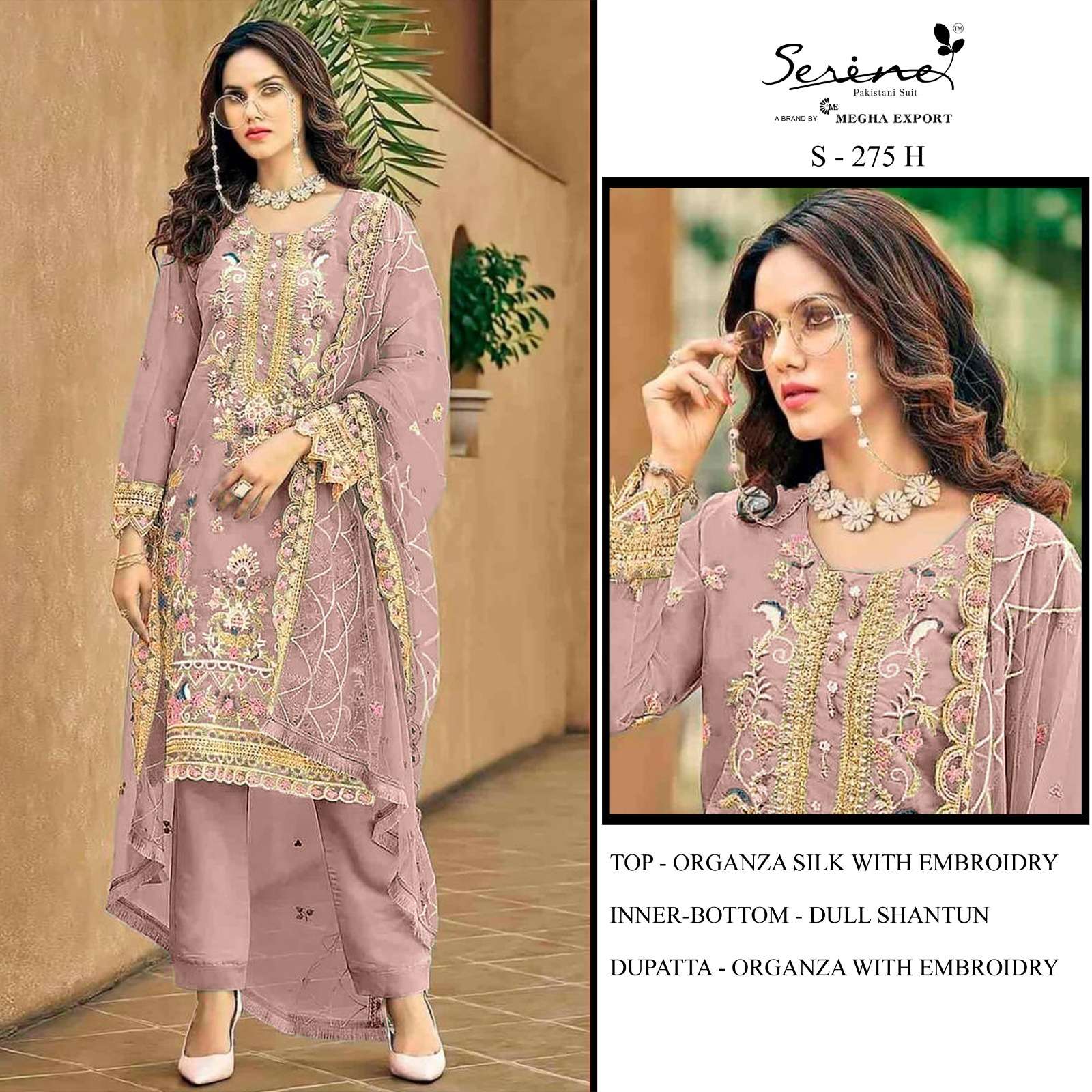 _*BRAND NAME*_:- SERINE®️ _*D NO*_:- S- 275.A TO D _*Top*_:- ORGANZA HEAVY EMBROIDERED with hand work _*Dupatta*_:- ORGANZA HEAVY EMBROIDERED _*Bottom*_:- DULL SANTOON _*Inner*_:- DULL SANTOON _*RATE*_:- 1249/- _*4 PCS IN SET*_ _*. delivery date* * Rade to ship*