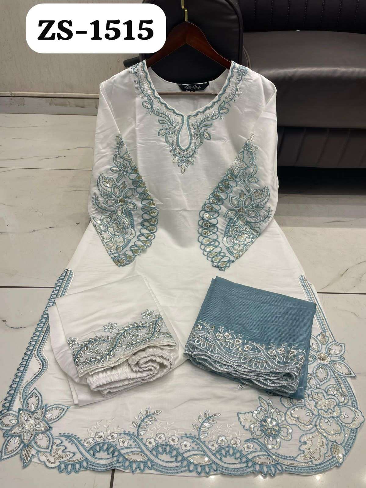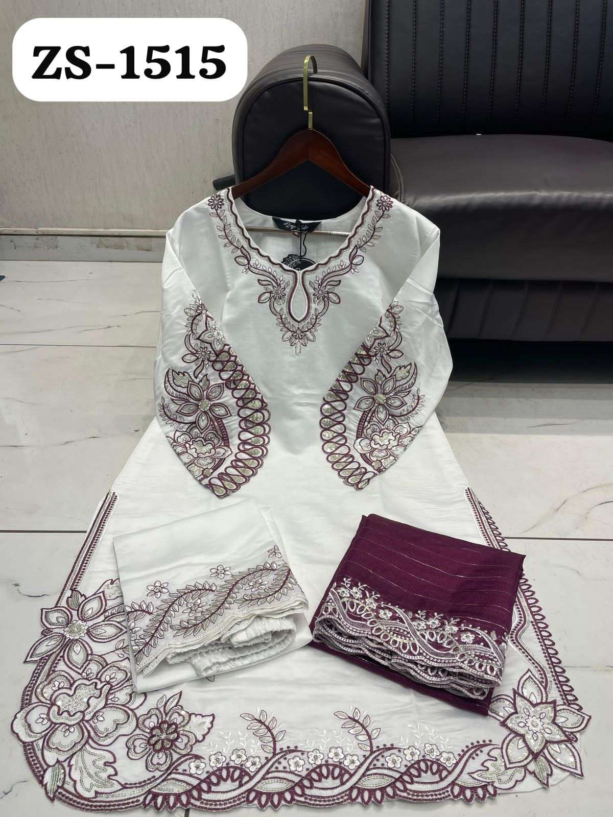D no:- #zs-1515 Top:- Roman Silk With Cutwork Embroidery Plazzo:- Roman Silk With Cutwork Embroidery Dupatta:- Kota Doriya With Beautiful Embroidery Size:- XL,XXL CP:- 1625₹ Colors:- 3 |