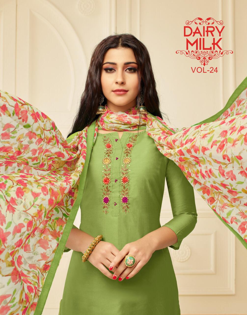 Dairy Milk Vol 24 By Angroop Plus 900 Series Fancy Chanderi Cotton Salwar Kameez Catlog Wholesale Delaer Surat
