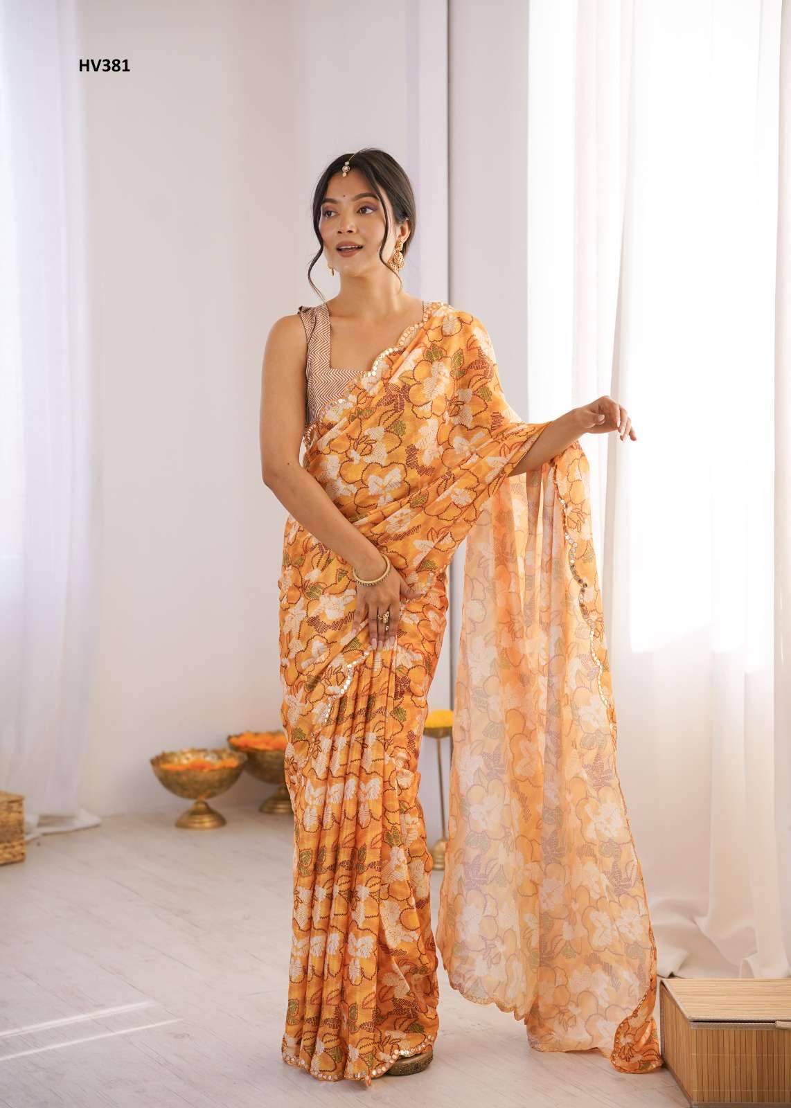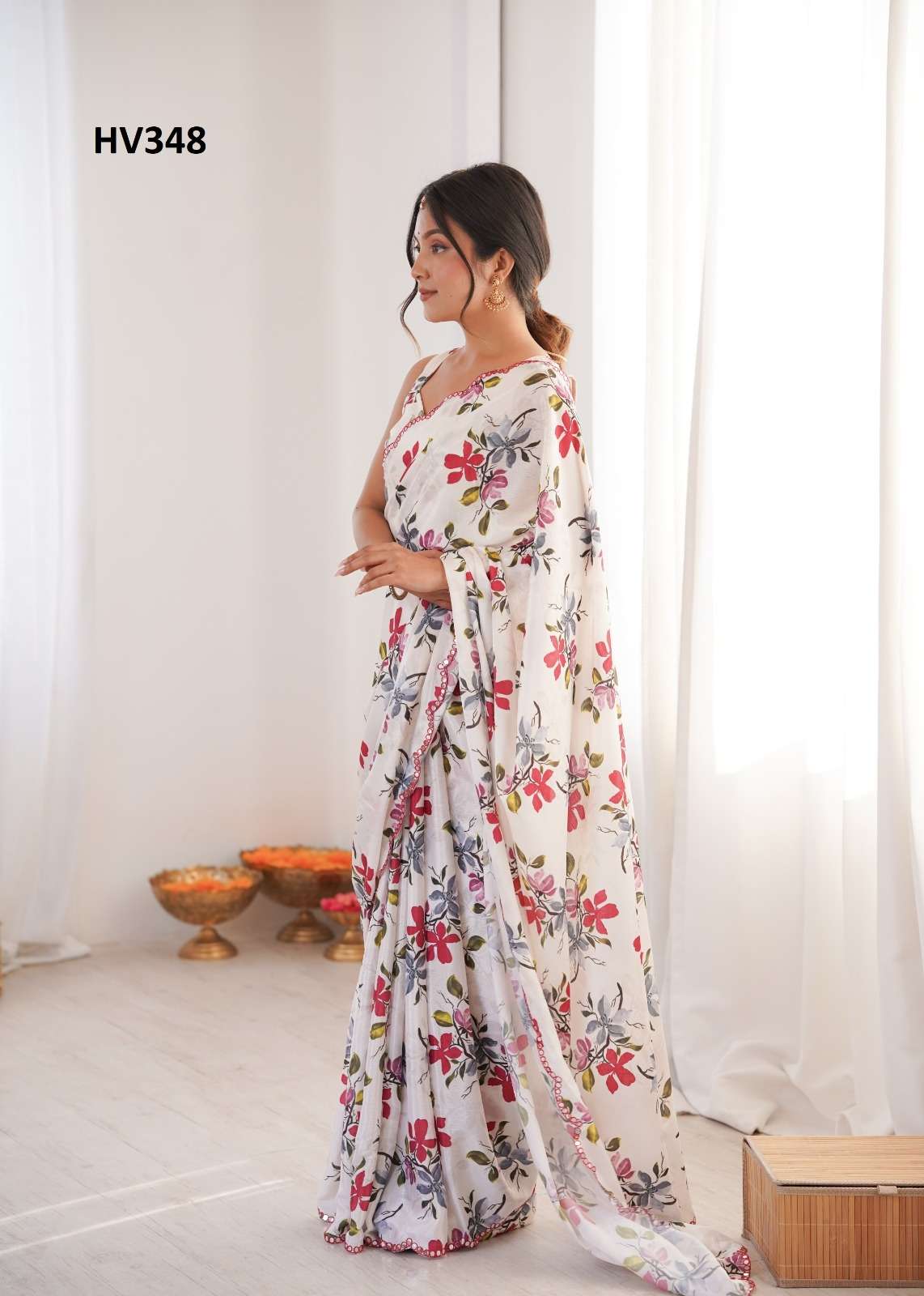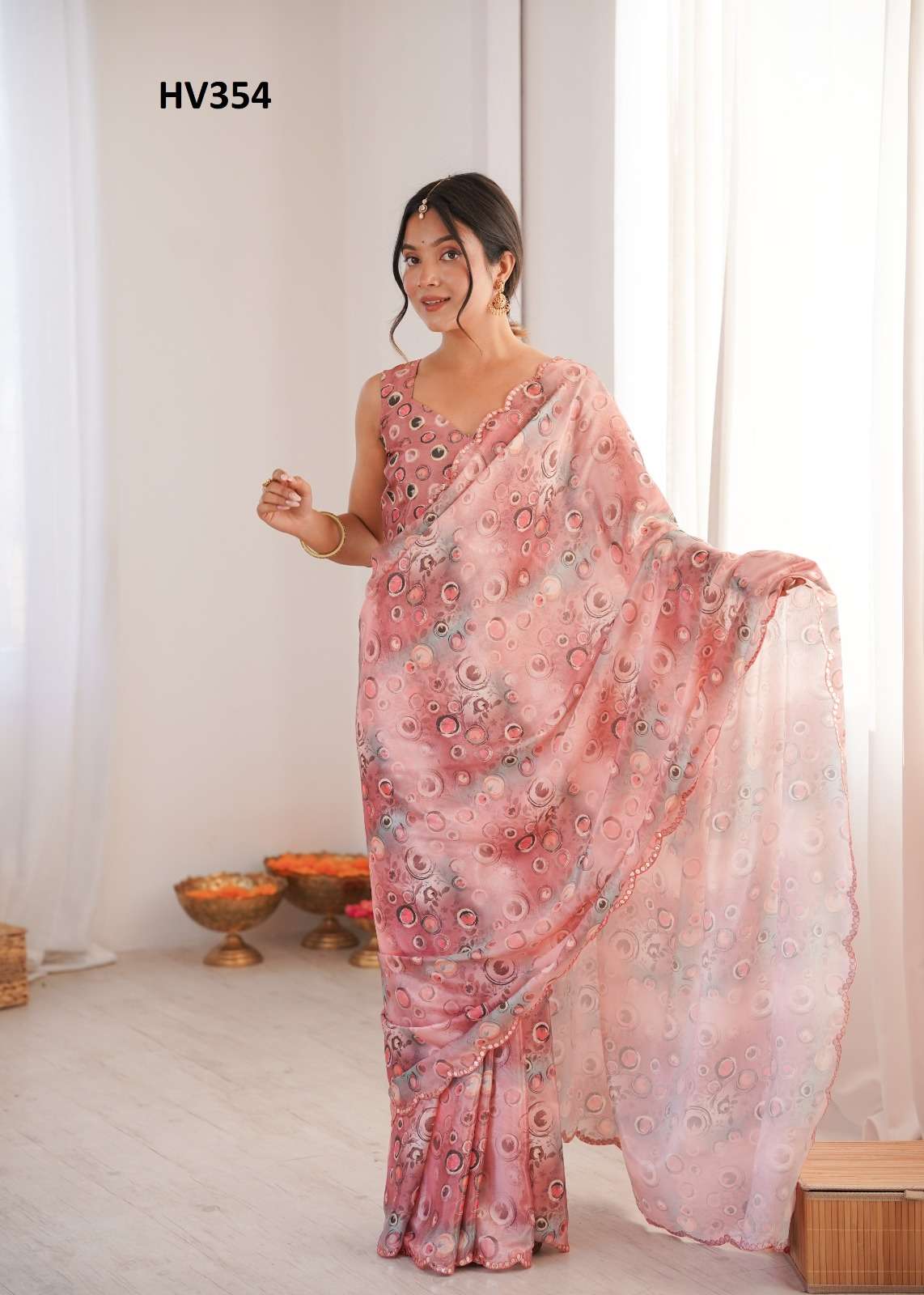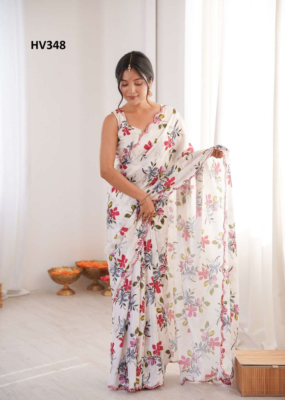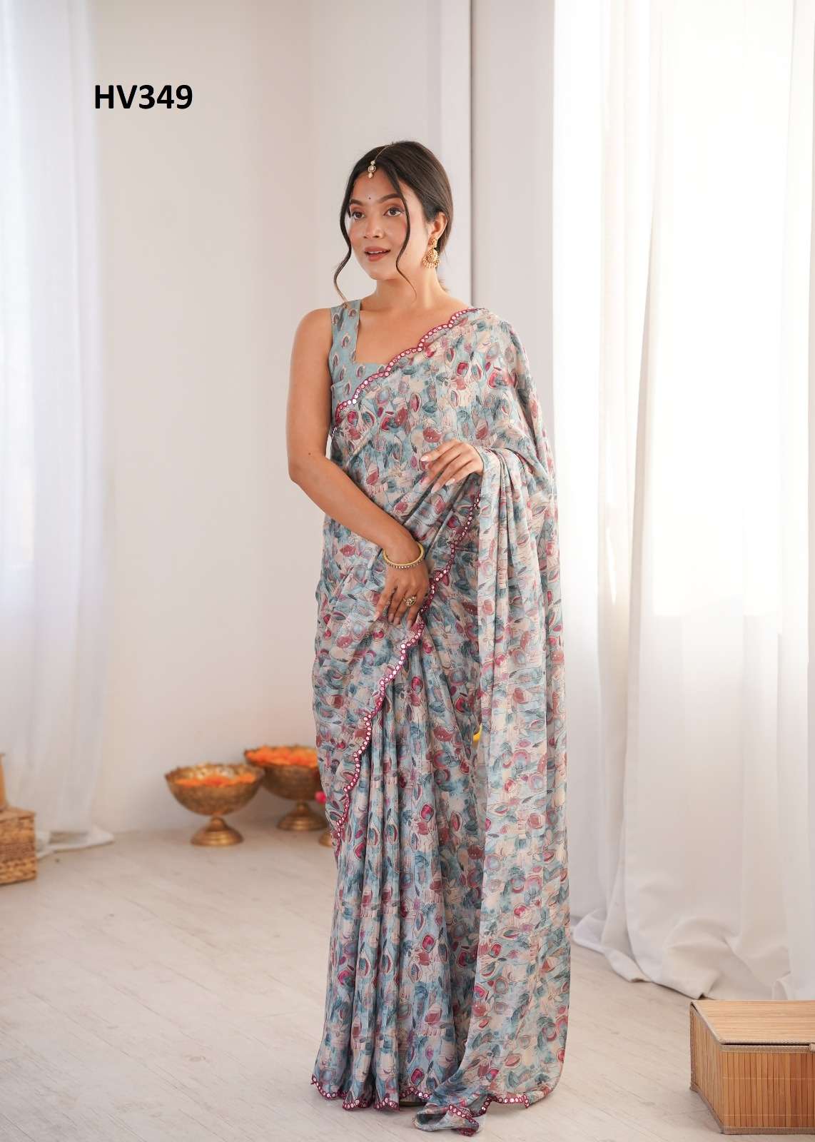 *Fabric* *saree-Chinnon* *Blouse-Chinnon*
