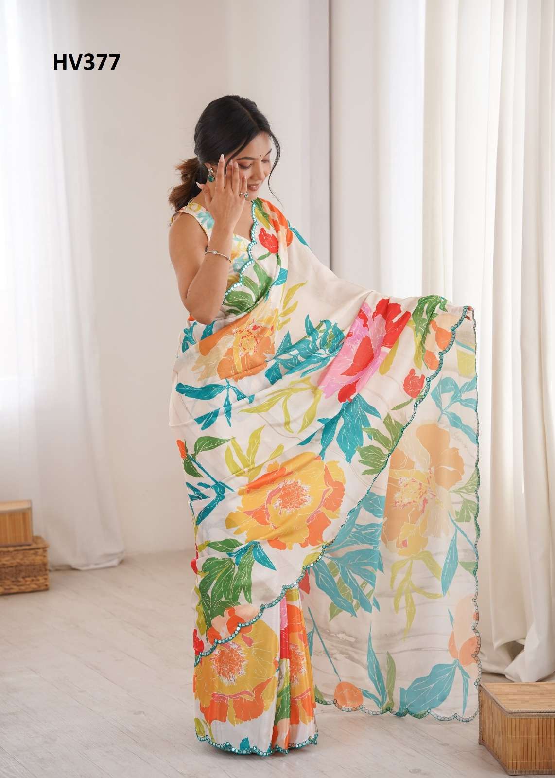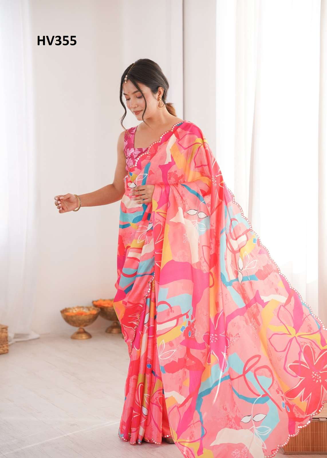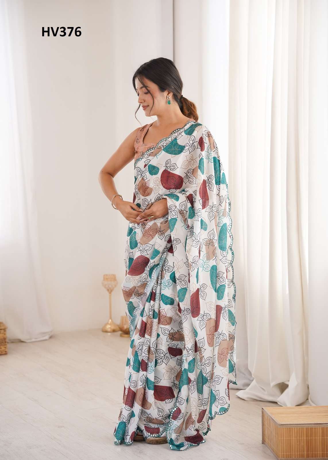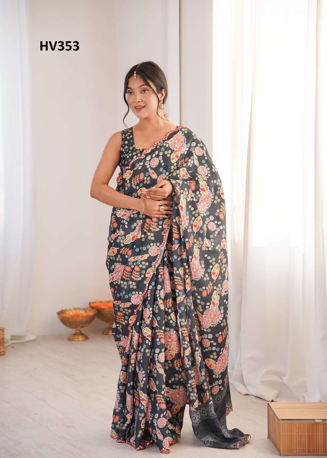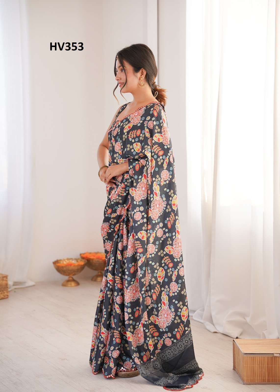 *Fabric* *saree-Chinnon* *Blouse-Chinnon*