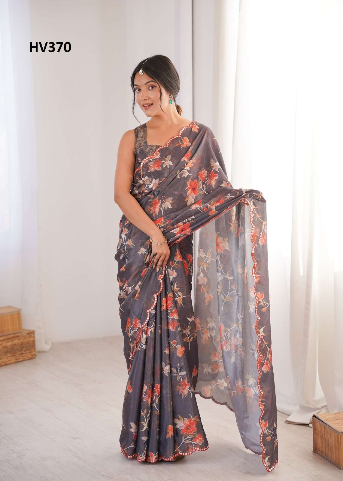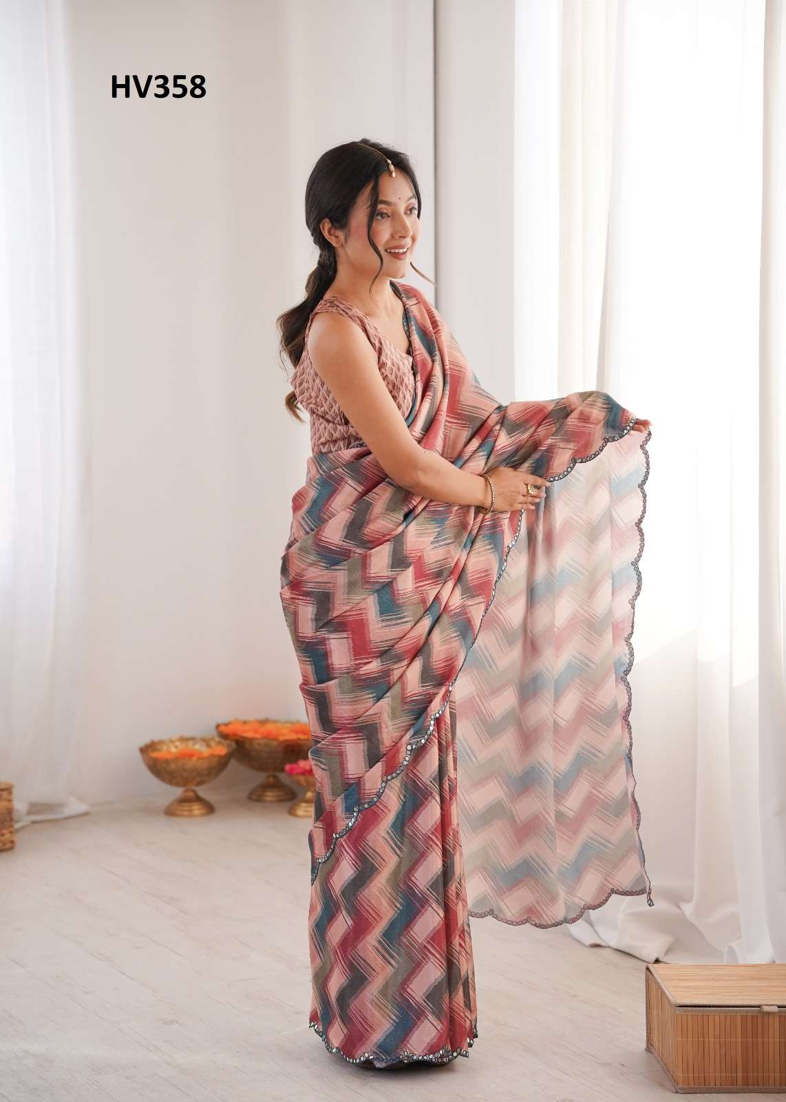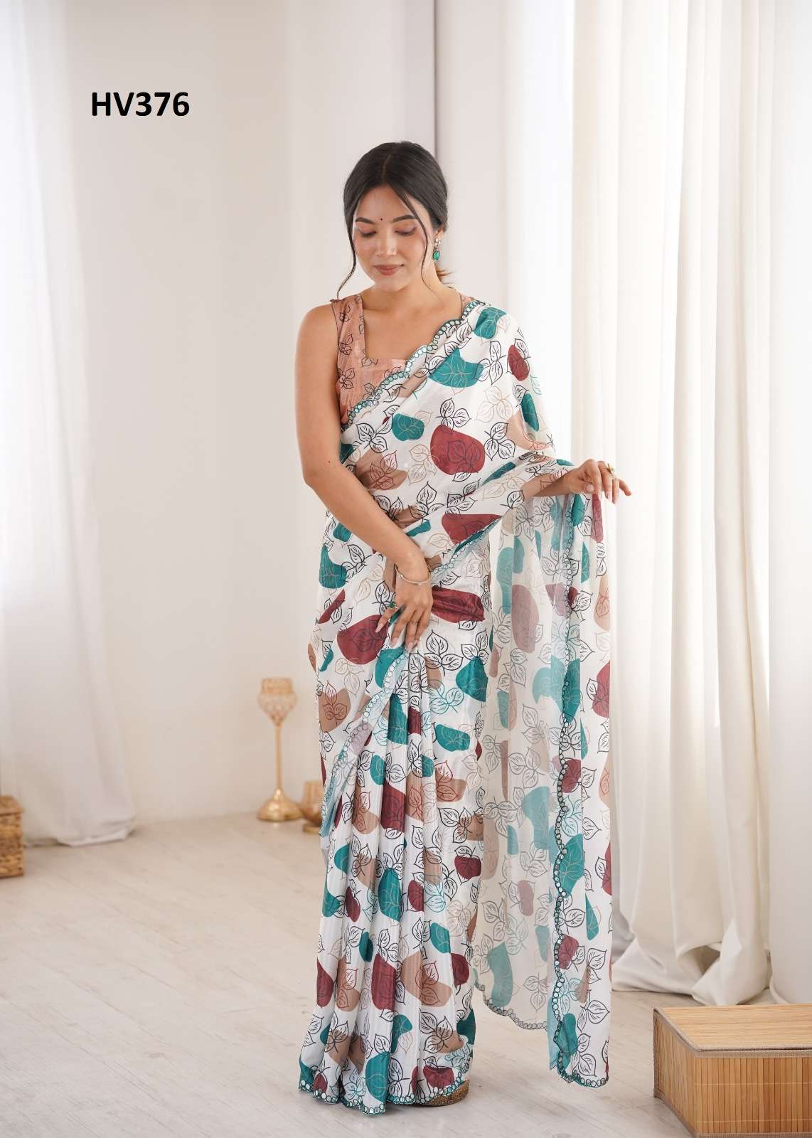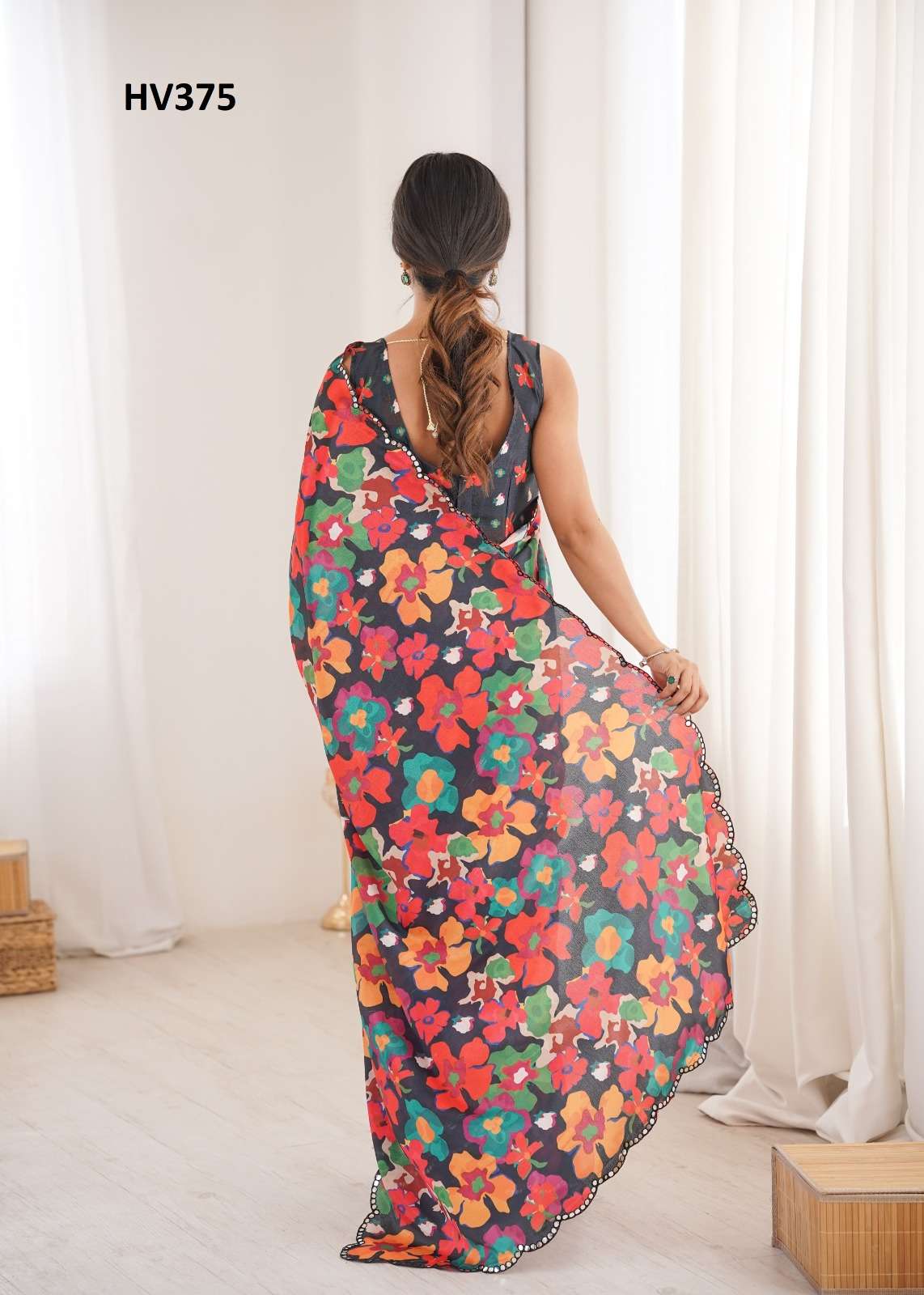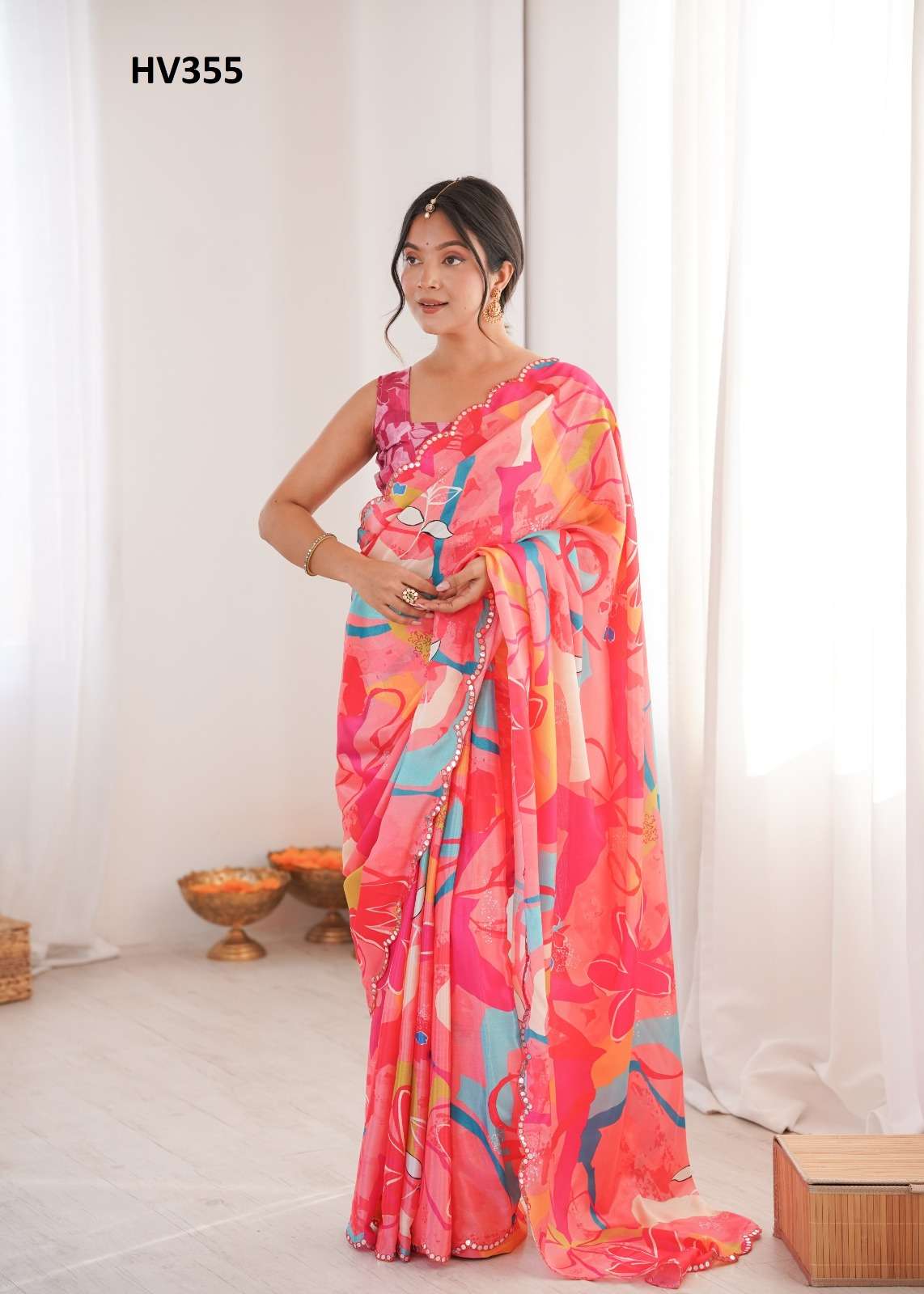 *Fabric* *saree-Chinnon* *Blouse-Chinnon*