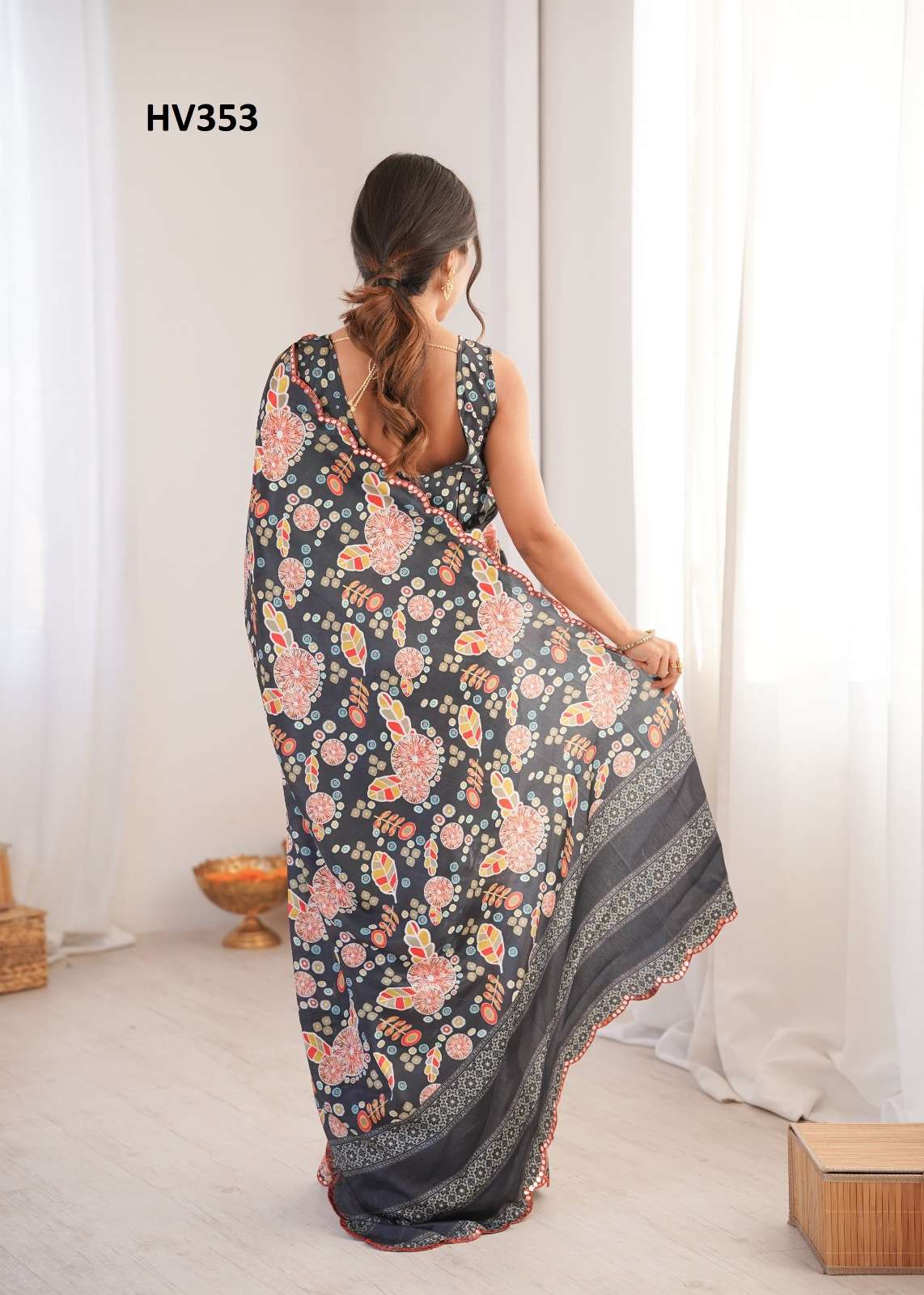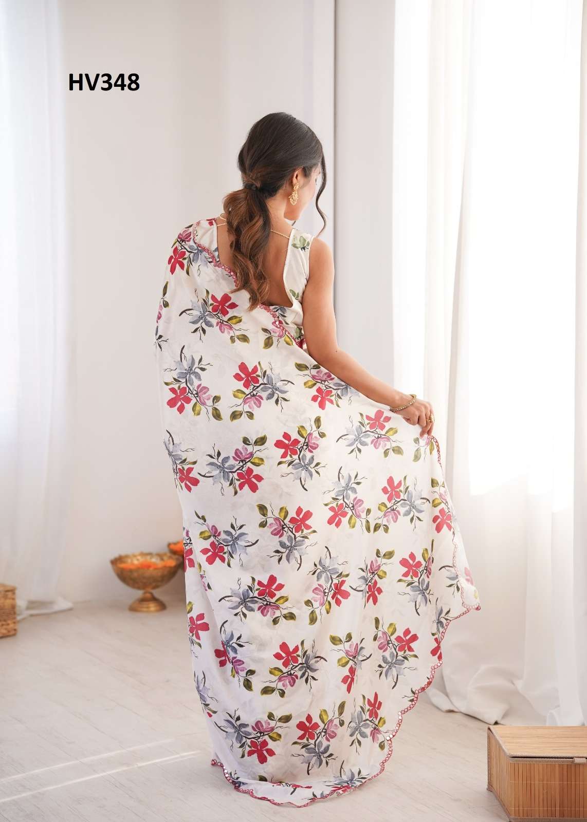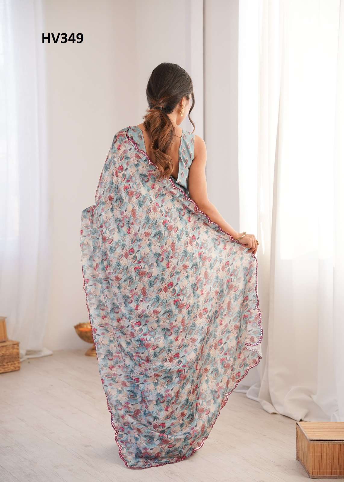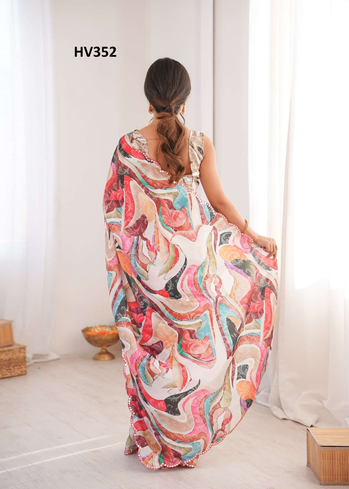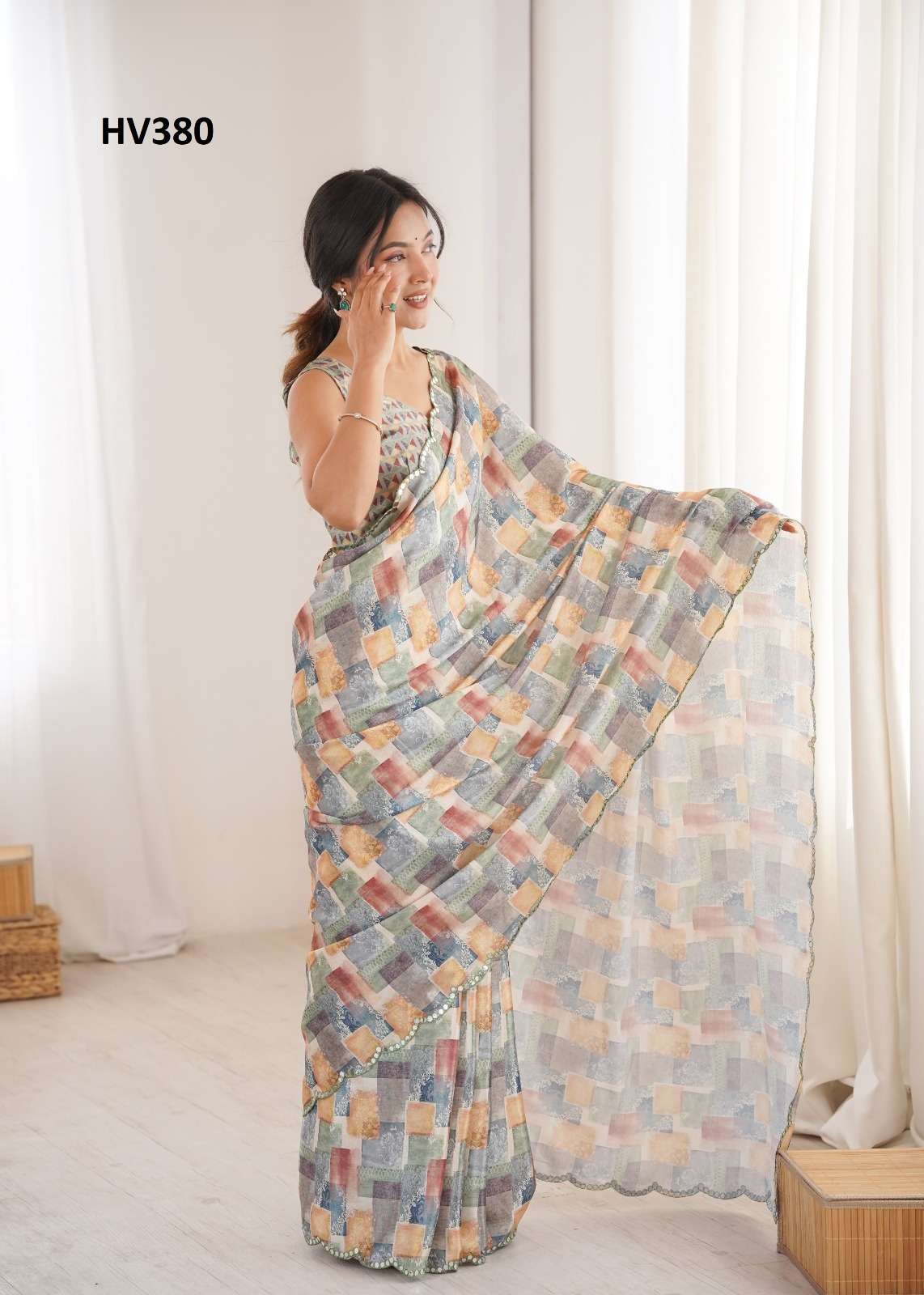 *Fabric* *saree-Chinnon* *Blouse-Chinnon*